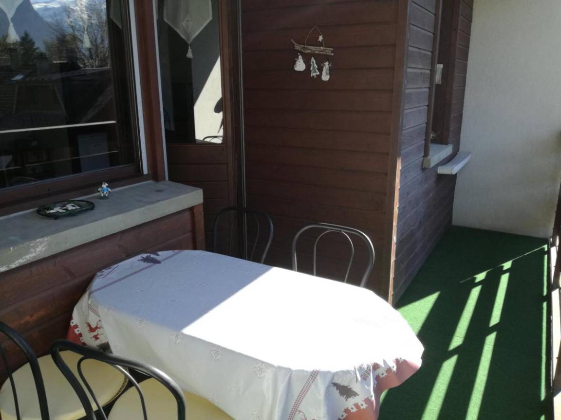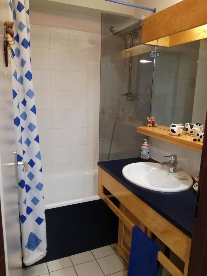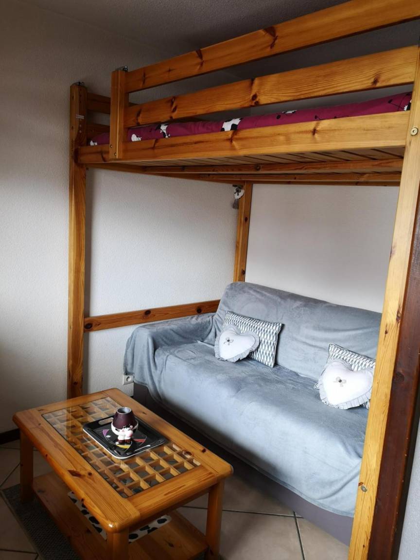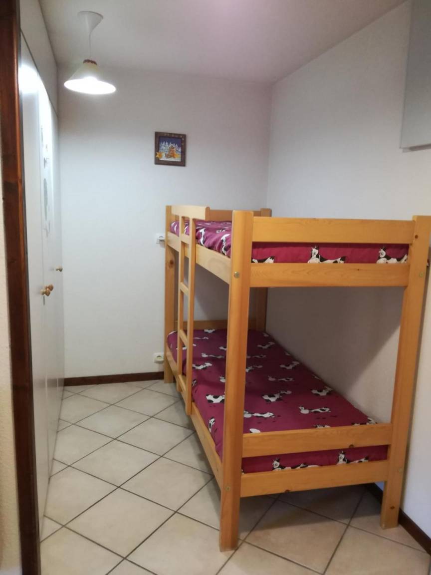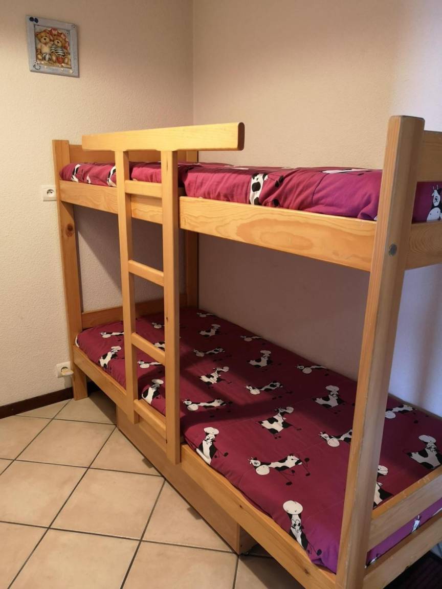 Fläche von ungefähr 28 m². 3te Etage. Orientierung : Süd. Wohnzimmer mit BZ-Sofas, Doppel Hochbett (140). offener Schlafbereich mit 2 Stockbetten (70). Kochnische mit Fonduegerät, Raclettegerät, Wasserkocher, Kaffeemaschine, Toaster, Mikrowellenherd, 2 Glaskeramikkochfelder, Kühl-Gefrier-Kombination. Badezimmer mit Badewanne. separates WC. Balkon mit Gartentisch und -stühle. Die oberen Betten sind nicht für Kinder unter 6 Jahren geeignet.