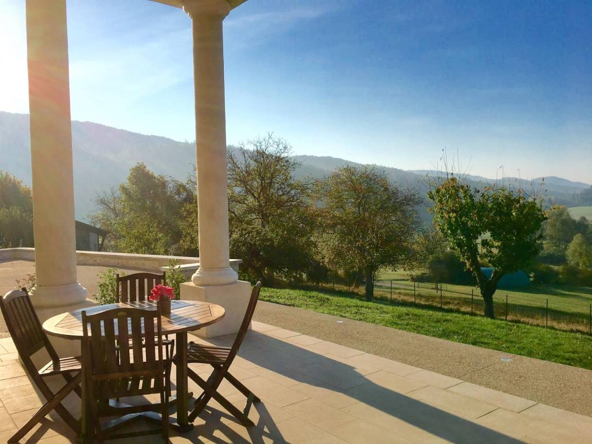 In der Nähe des TGV-Bahnhofs Nurieux-Volognat (2 Stunden von Paris entfernt) (Bahnlinie Paris–Genf) (11 km).