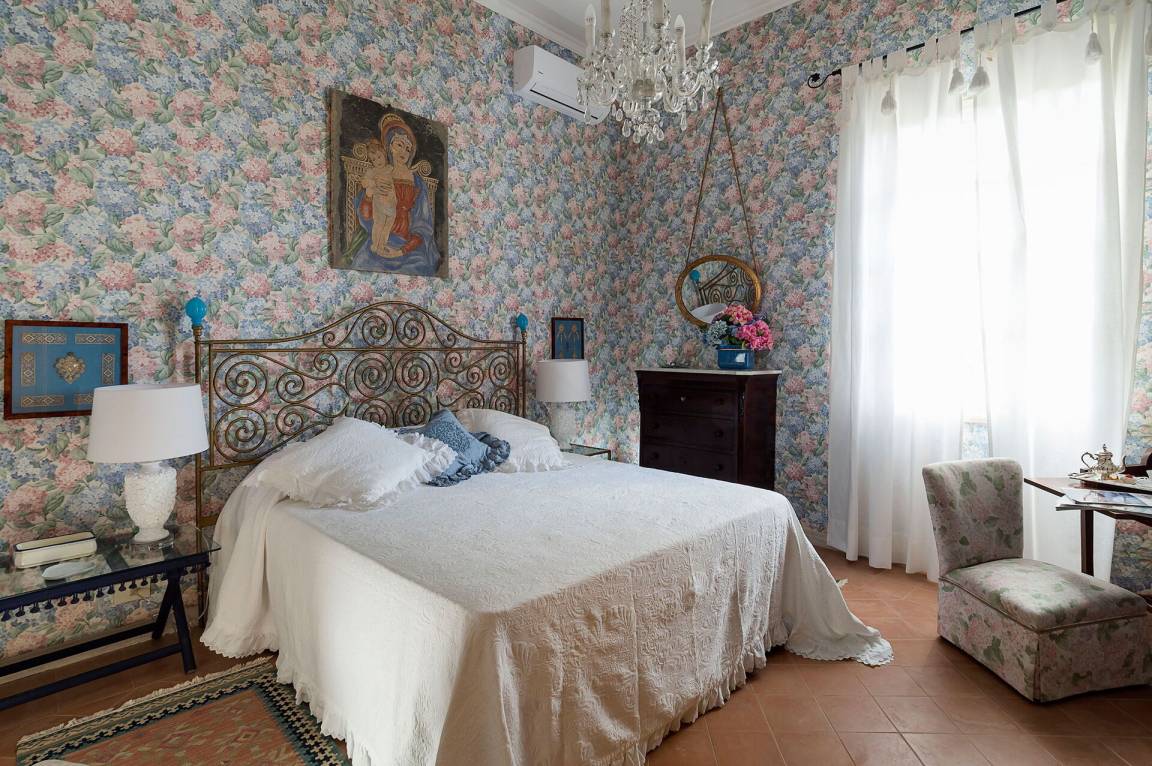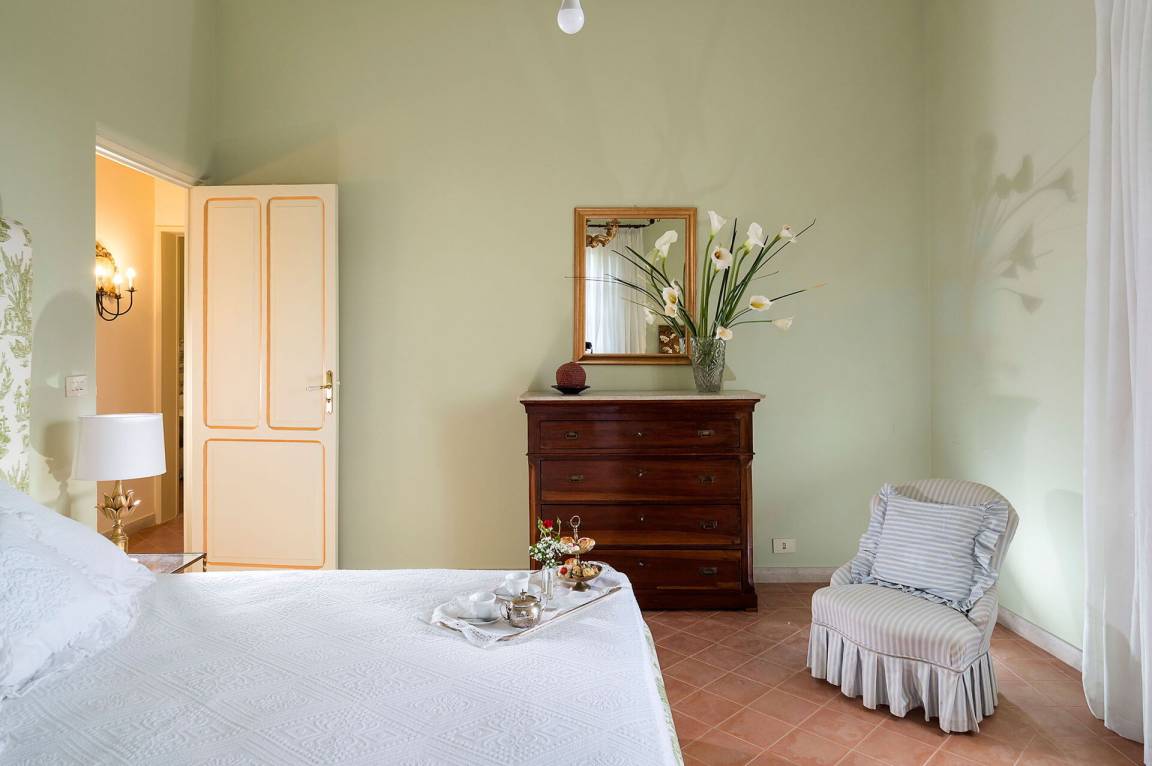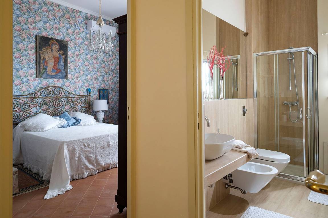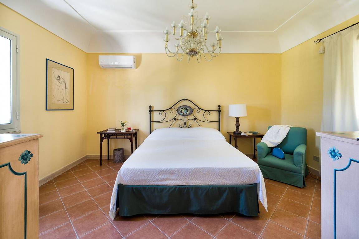 Schlafzimmer 1: großes Doppelbett, Krippe, WiFi Internet, Internet, Klimaanlage, TV, Sessel, Ausgang auf die Terrasse.