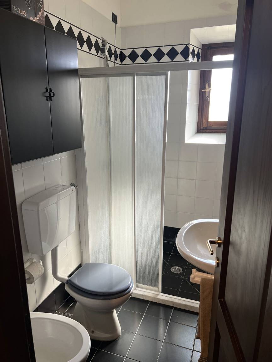 Badezimmer: Waschbecken, WC, Bidet, Dusche, WiFi Internet.