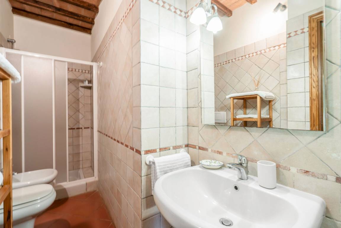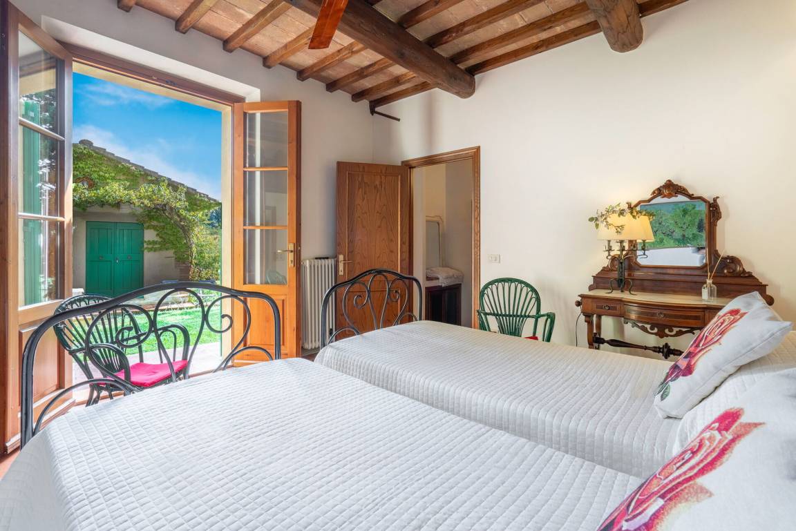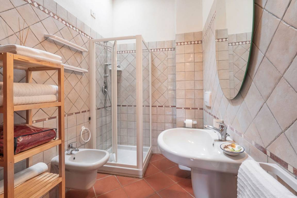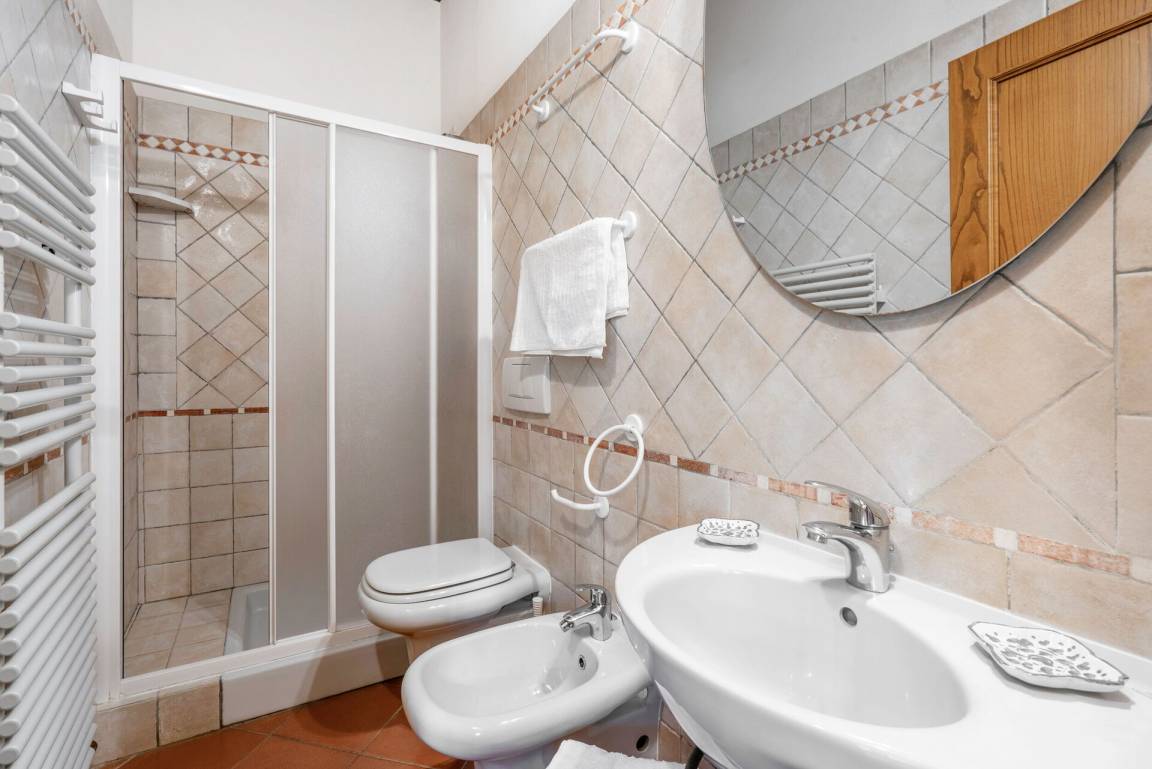 Schlafzimmer mit Bad 4: zwei Einzelbetten, WiFi Internet, Deckenventilator, Waschbecken, WC, Bidet, Dusche, Fön.