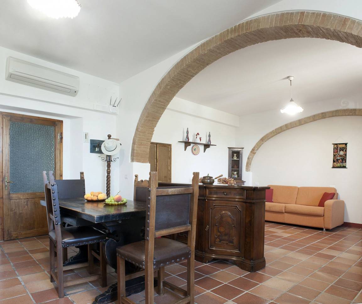 Wohnküche: gut ausgestattete Küche, Esstisch (Personen: 4), Kühlschrank, Herd, Ofen, Kamin, Doppel-Schlafsofa, WiFi Internet, Klimaanlage, TV, Ausgang auf den Garten.