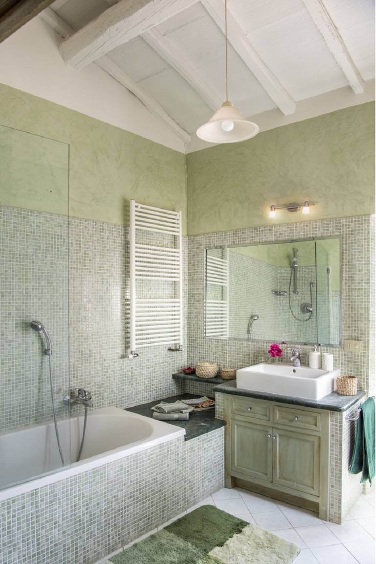 Badezimmer 1 (15 m²): Waschbecken, WC, Bidet, Badewanne, Dusche, Fön, WiFi Internet, Fliegengitter.