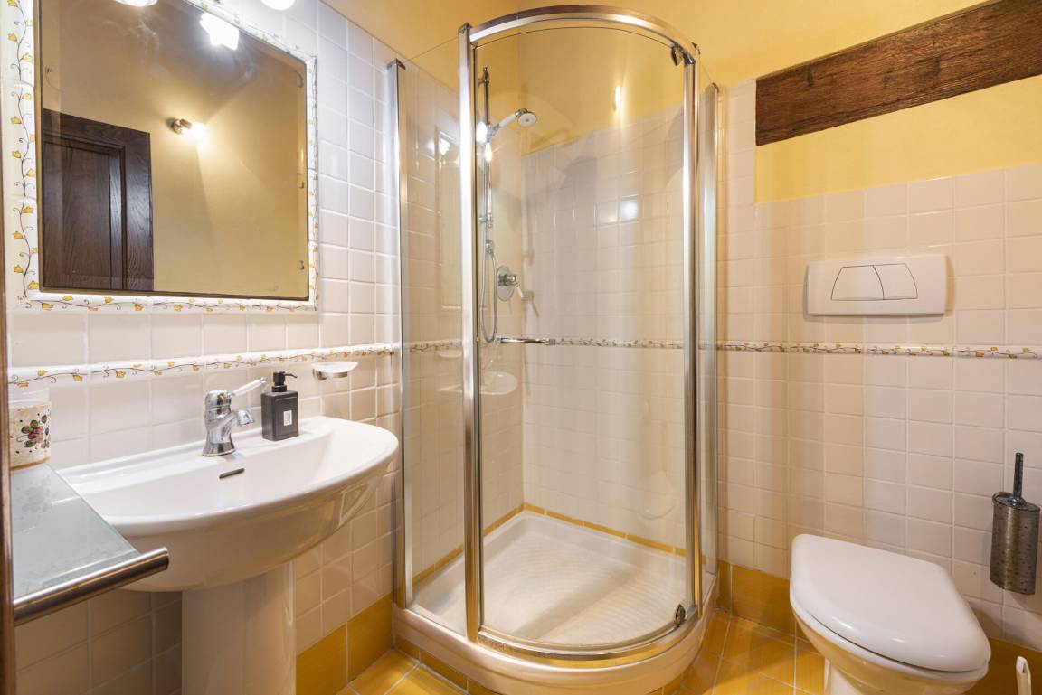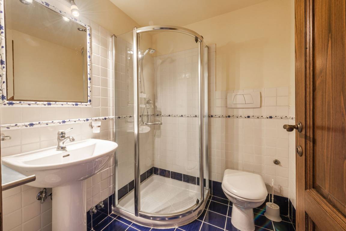 Badezimmer 1: Waschbecken, WC, Bidet, Dusche.