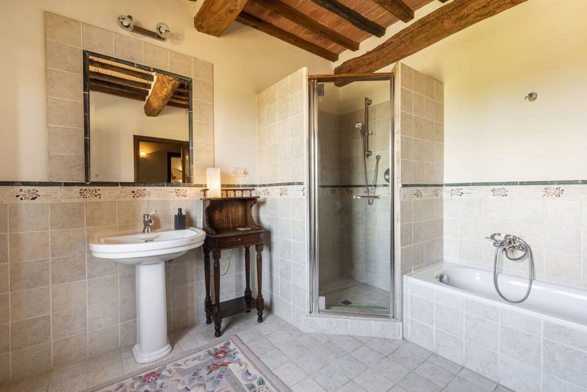 Badezimmer 3: Waschbecken, WC, Bidet, Badewanne, Dusche.