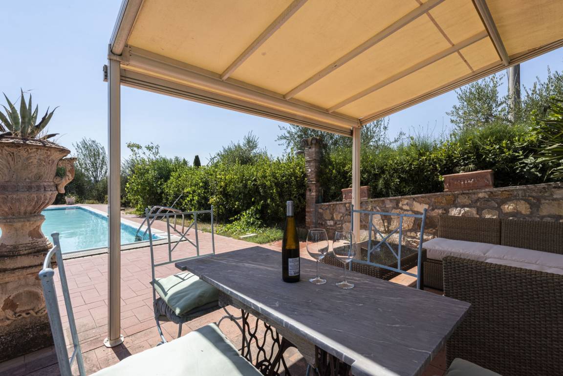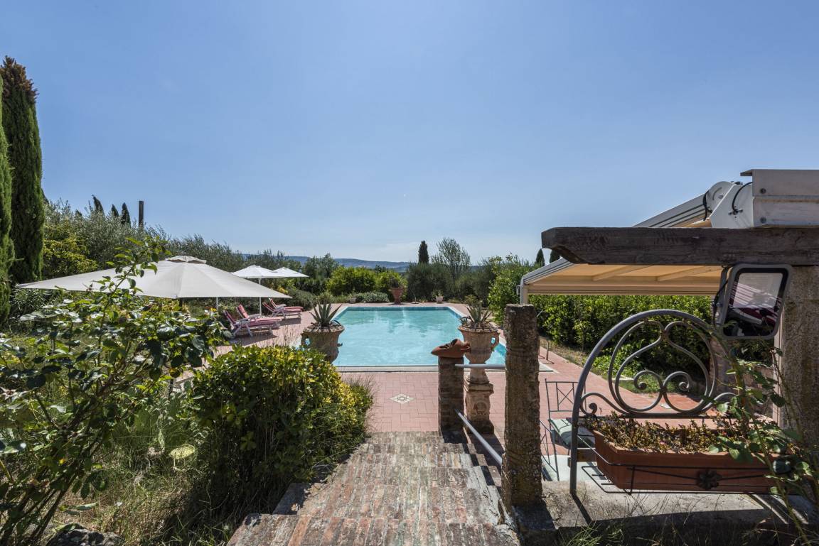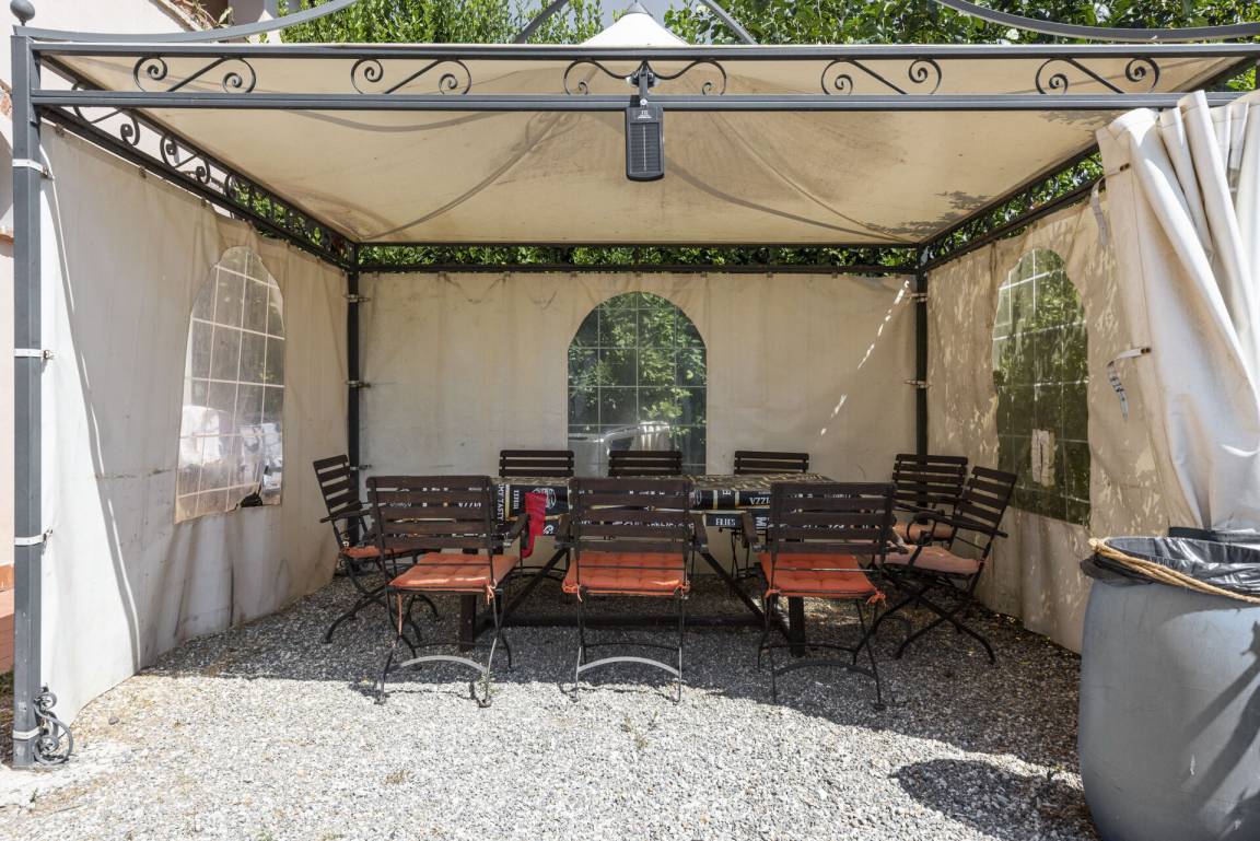 Garten: Schwimmbad (privat, Breite: 6m, Länge: 12m, Tiefe: 1.6m, Außen), Grill, Außenbereich für das Essen im Freien, Esstisch (Personen: 8), zwei Pavillons, Gartenmöbel, Sonnenliege, eingezäunt.