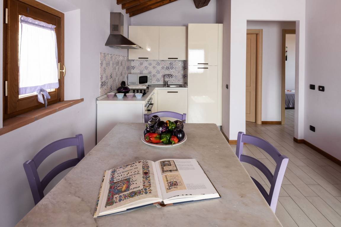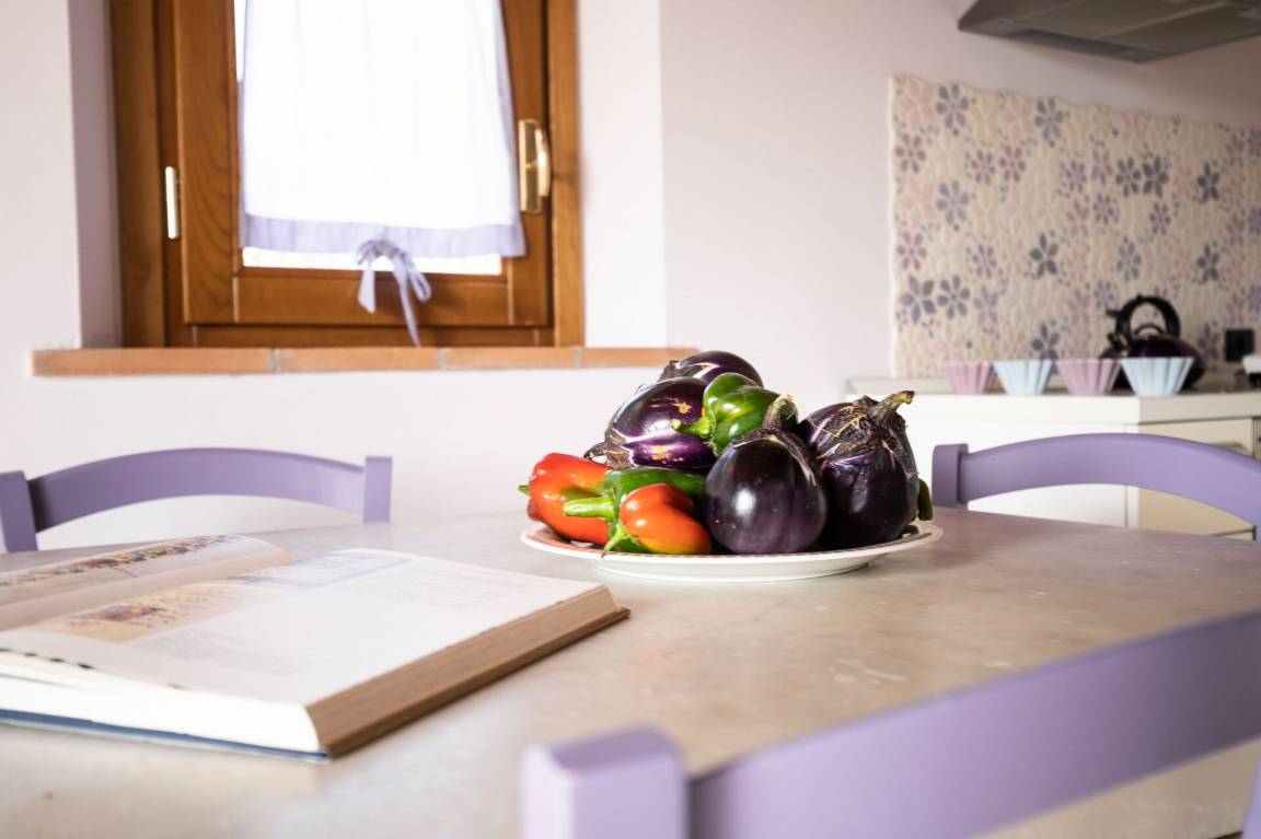 Wohnküche: gut ausgestattete Küche, Esstisch, Kühlschrank, Tiefkühler, Mikrowelle, Herd, Ofen, Italienische Kaffeemaschine, Amerikanische Kaffeemaschine, Sessel, WiFi Internet, Klimaanlage, Satelliten-TV, Ausgang auf den Garten.