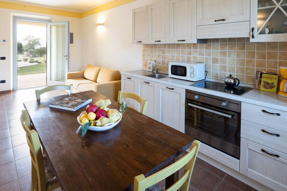Wohnküche: gut ausgestattete Küche, Esstisch, Kühlschrank, Tiefkühler, Mikrowelle, Herd, Ofen, Italienische Kaffeemaschine, Amerikanische Kaffeemaschine, Sofa (Personen: 4), WiFi Internet, Klimaanlage, Satelliten-TV, behindertengerecht, Ausgang auf den Patio.