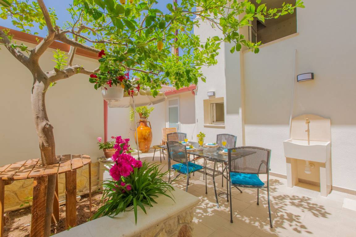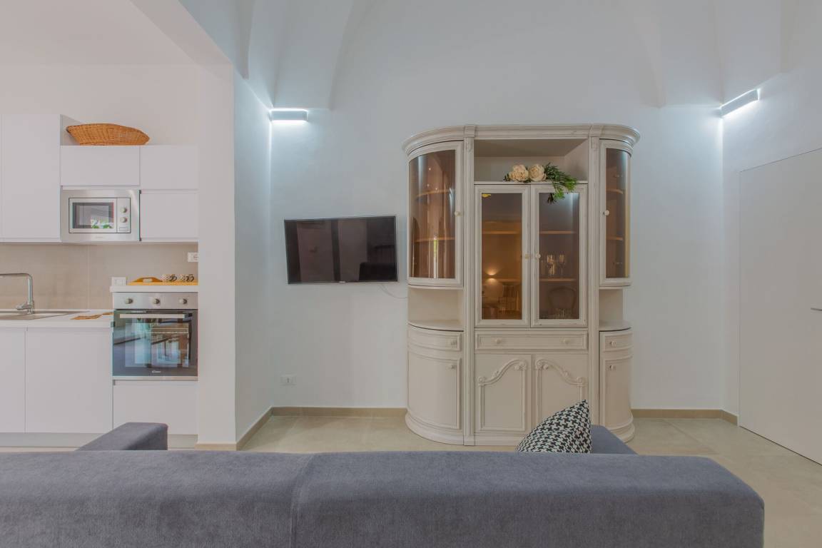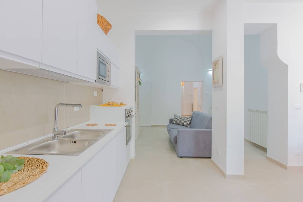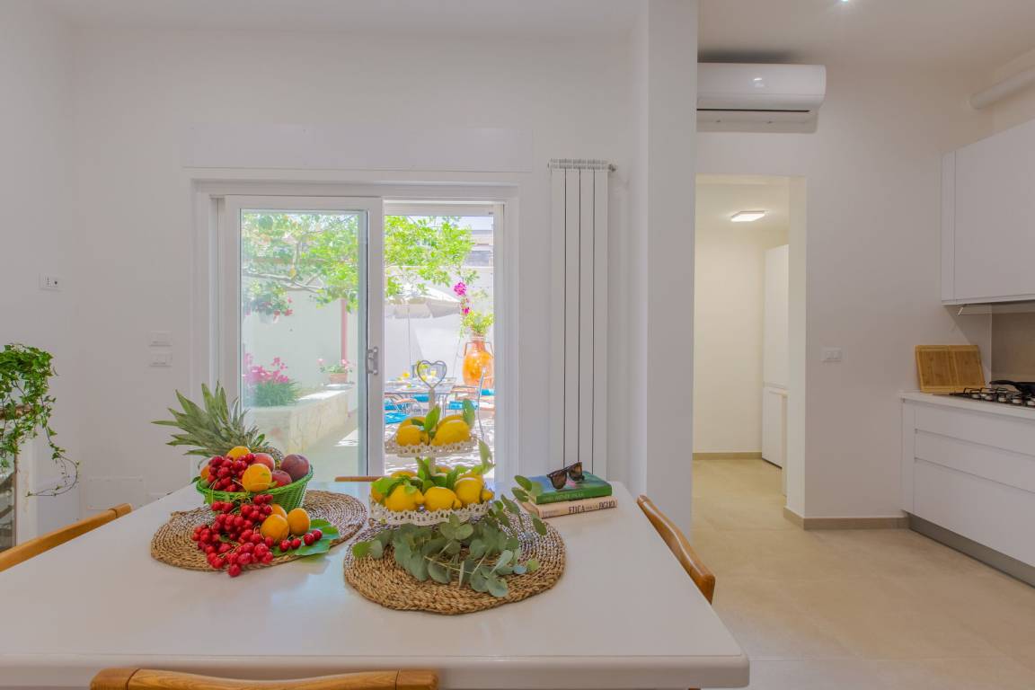 Wohnküche: gut ausgestattete Küche, Spülmaschine, Kühlschrank, Tiefkühler, Mikrowelle, Herd, Ofen, Bügeleisen, Italienische Kaffeemaschine, Sofa bed, WiFi Internet, Klimaanlage, Fliegengitter, TV, Ausgang auf den Garten.