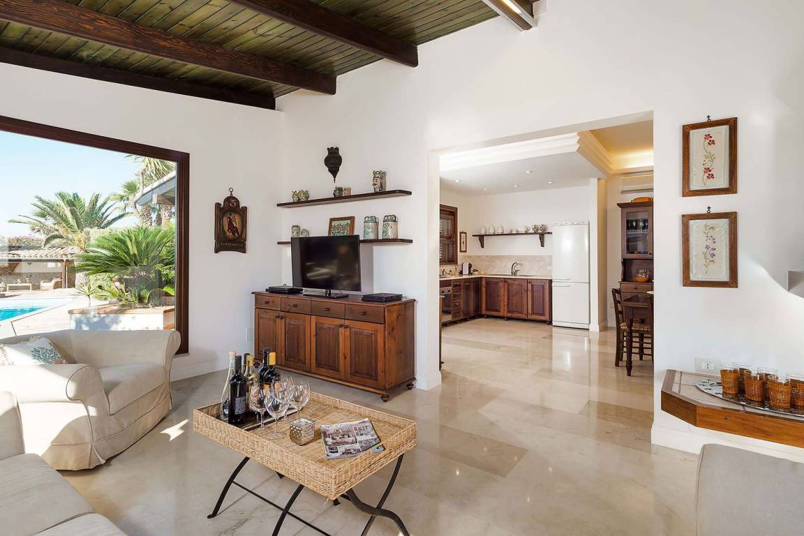 Die Villa liegt in fußläufiger Nähe zum Strand von San Vito lo Capo. Ein privater Pool ist vorhanden. Meerblick ist von der Immobilie aus sichtbar.