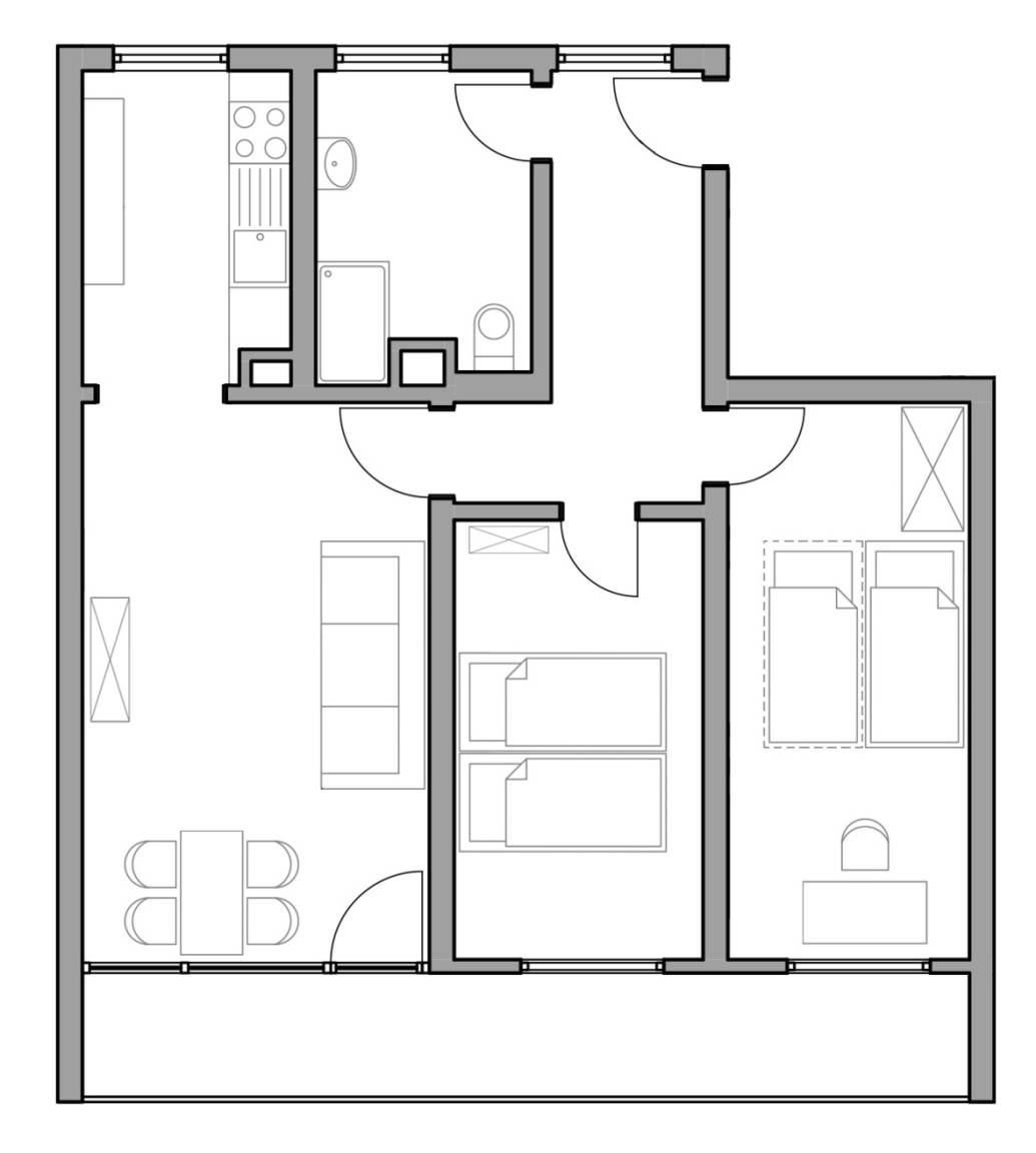 * 1 weiteres Schlafzimmer mit einem ausziehbaren Bett (ausgezogen 1,60m x 2,00m)