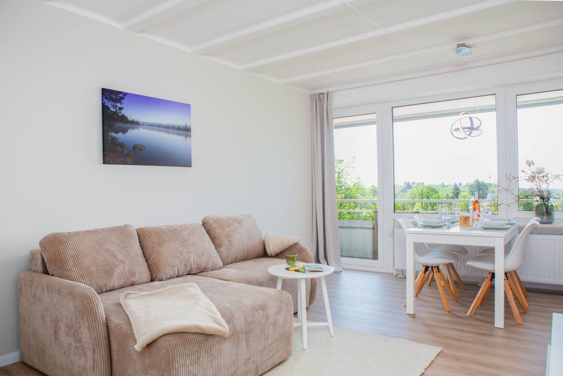 Komplett neu sanierte (Juni 2025) Ferienwohnung mit 2 Schlafzimmern für 4 Gäste und Balkon mit herrlichem Ausblick in die Harzer Natur.