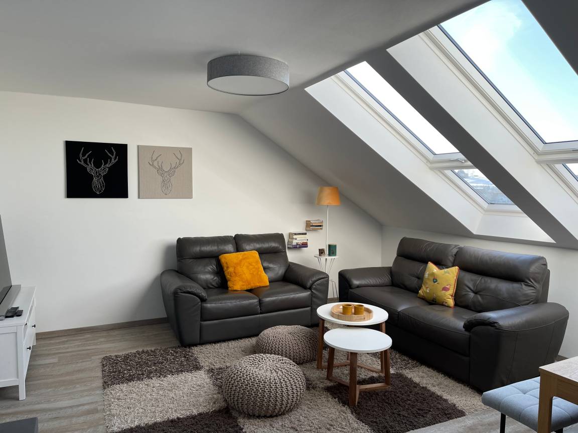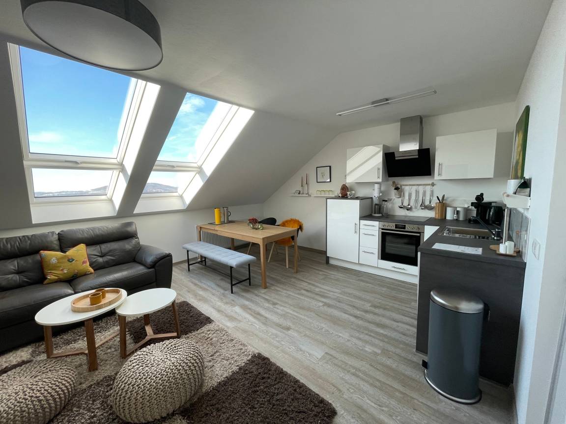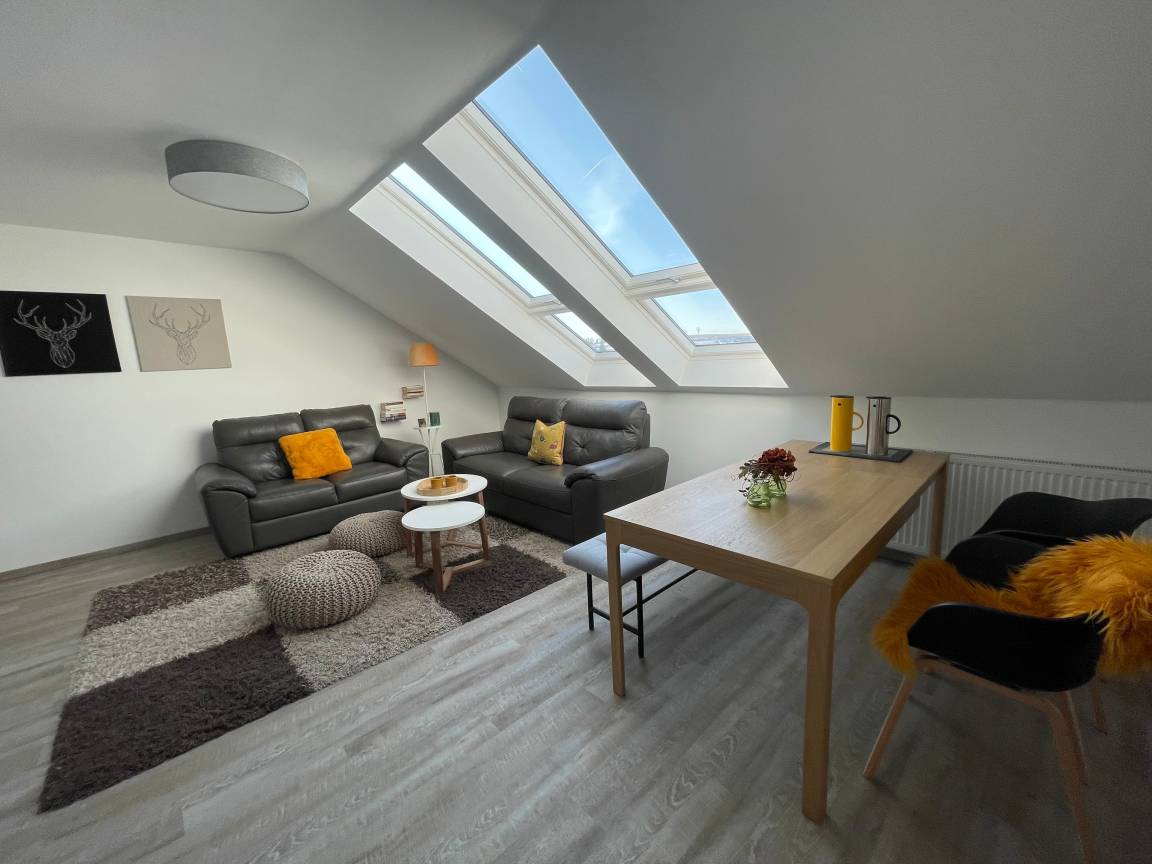 Diese große lichtdurchflutete Ferienwohnung befindet sich im DG des Hauses "Schöne Höhe 600" und wurde mit sehr viel Liebe zum Detail komplett saniert und mit hochwertiger Ausstattung eingerichtet. Durch die großzügigen Dachfenster fällt sehr viel Licht in die Wohnung und man kann den Blick auf den Matthias-Schmidt-Berg und den Glockenturm von Sankt Andreasberg genießen. Zusätzlich können die Gäste die neue Terrasse nutzen und den atemberaubenden Panoramablick genießen.