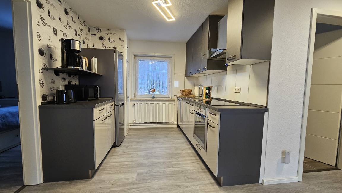 WLAN, Flat TV, Tablet, Duschbad mit Regendusche und Föhn, voll ausgestattete Einbauküche mit Ceranfeld, Backofen, Geschirrspüler, Kaffeemaschine, Mikrowelle, Kühl- Gefrierkombi.