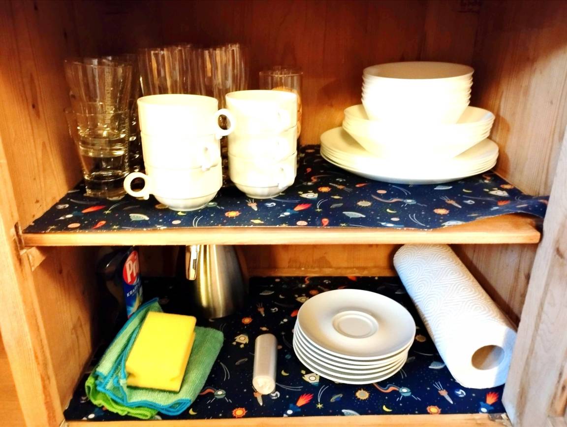 Geschirr und Besteck für 6 Erwachsene und 2 Kinder