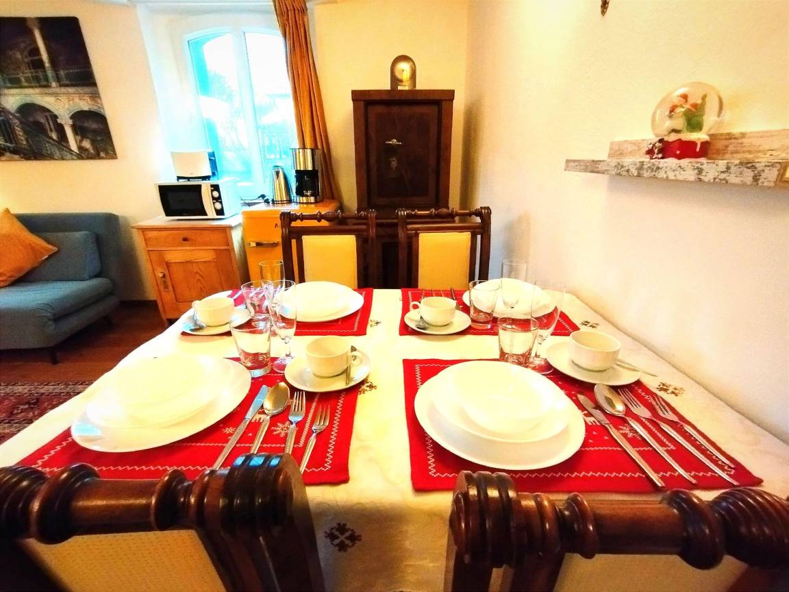 Essbereich: Tisch und 6 Stühle