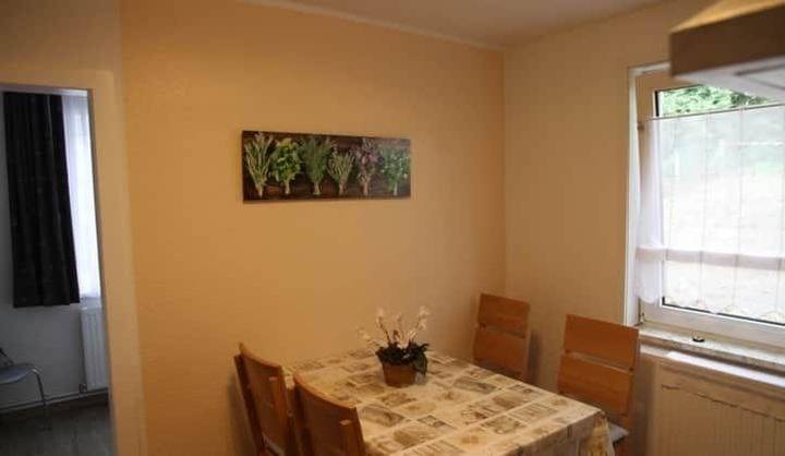 Es ist eine umfangreich ausgestattete Einbauküche vorhanden. Unter anderem gehören zum Inventar eine Spülmaschine, ein großer Kühlschrank mit Gefrierfach, ein Backofen, eine Mikrowelle, eine Kaffeemaschine (wahlweise für Senseo-Pads oder Filtertüten), ein Wasserkocher, ein Eierkocher, ein Toaster, eine Kaffeeisolierkanne u.a.