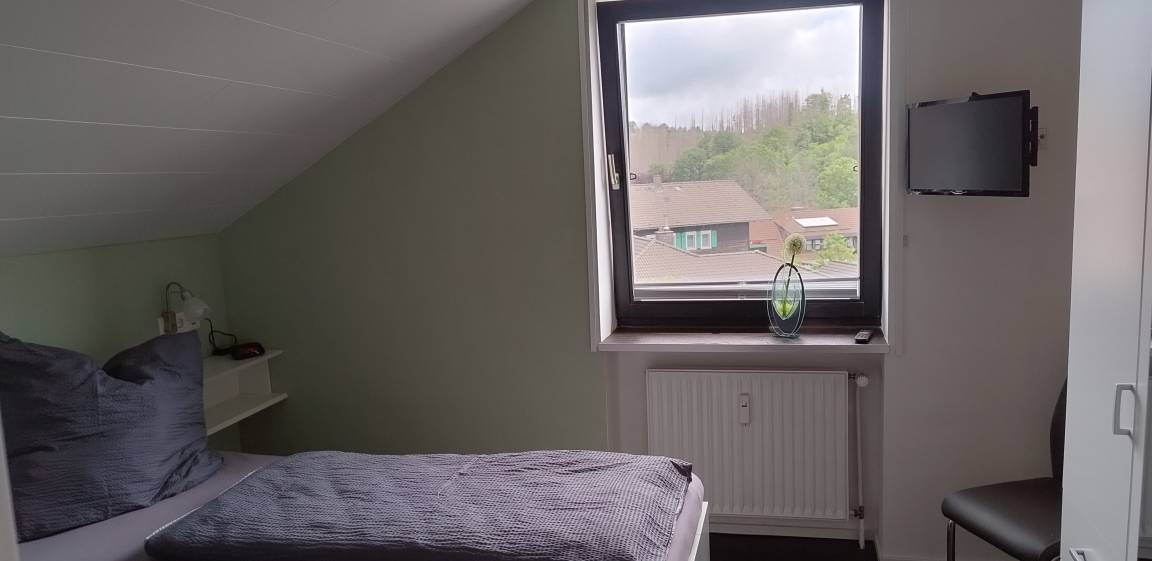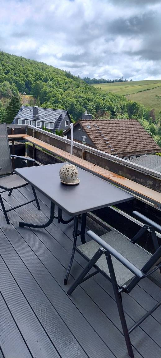 Neu sanierte Ferienwohnung (2025) mit Balkon und herrlichem Ausblick auf den Matthias-Schmidt-Berg mit seiner Sommerrodelbahn und Ski-Piste.