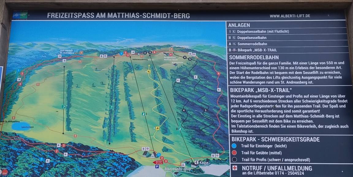 Sankt Andreasberg punktet mit vielen Wanderrouten rund um den Sonnenberg und Matthias-Schmidt-Berg. Für kleine Abenteurer befindet sich eine Sommerrodelbahn und ein Hochseilgarten unweit der Haustür. Für größere Abenteurer gibt es den Mountainbike-Park mit Abfahrten verschiedener Schwierigkeitsgrade und Fahrradverleih.