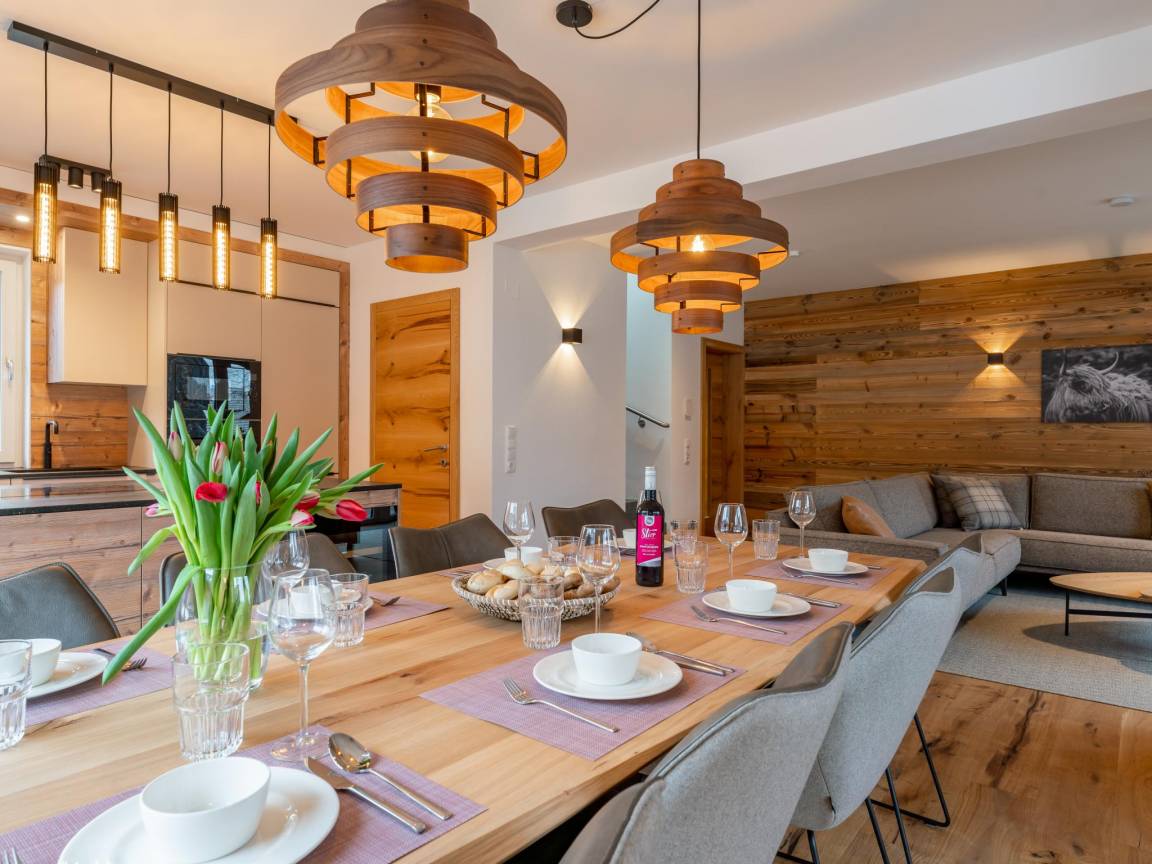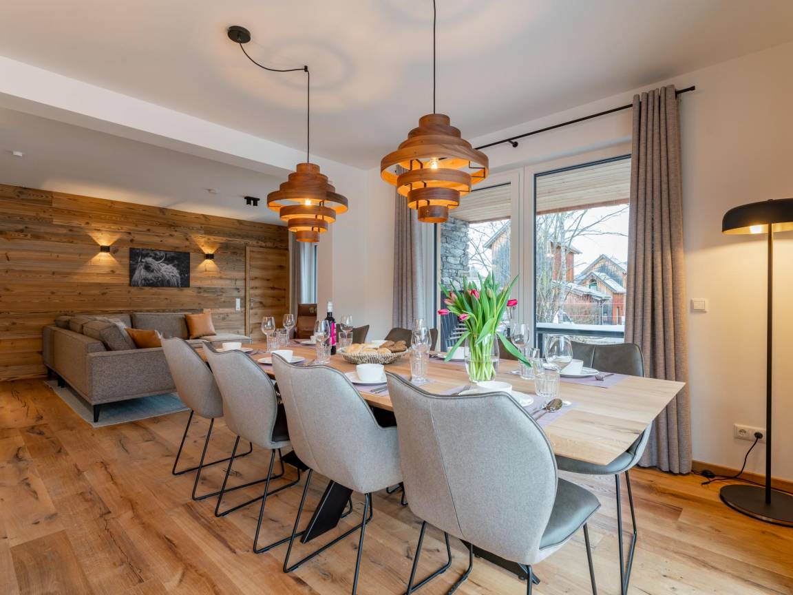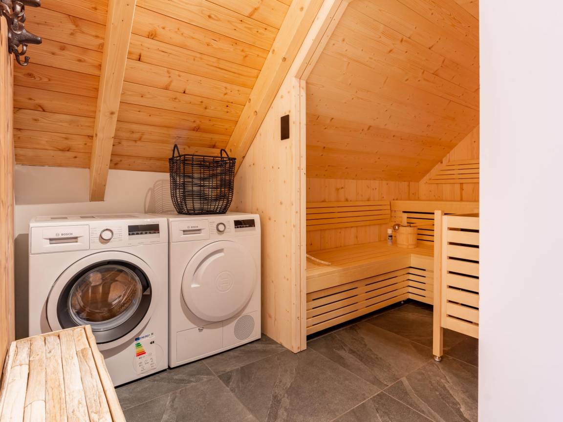 Layout : Parterre: Wohnzimmer mit TV(smart TV), Sitzecke , Wohnküche mit Esstisch(9 Personen), Kochplatte(Induktion), Kochendwasserhahn, Kaffeemaschine(cups, Filter), Backofen, Mikrowelle, Geschirrspüler, Kühlschrank, Weinkühlschrank , Schlafzimmer mit Badezimmer mit 2x Einzelbett(Boxspring), TV(smart TV), Dusche, Waschbecken, Toilette , Toilette, Flur, Abstellraum mit Skischuhheizung