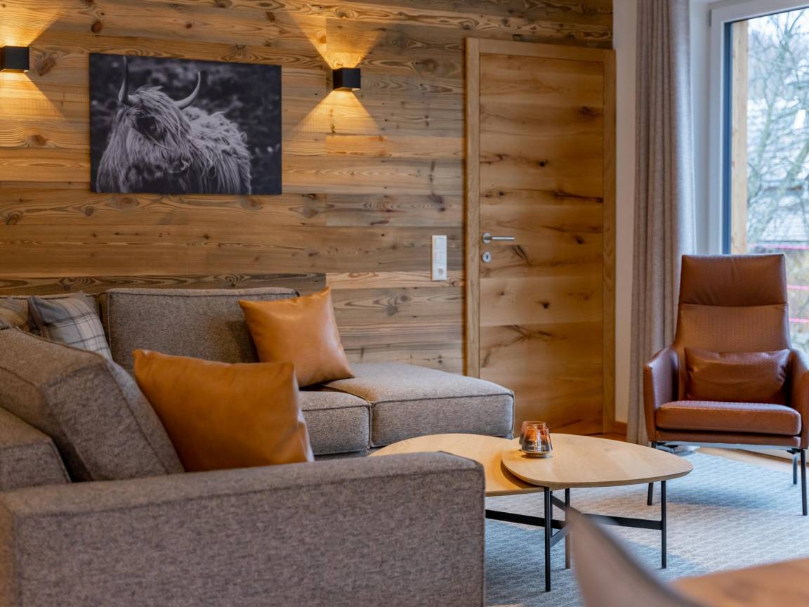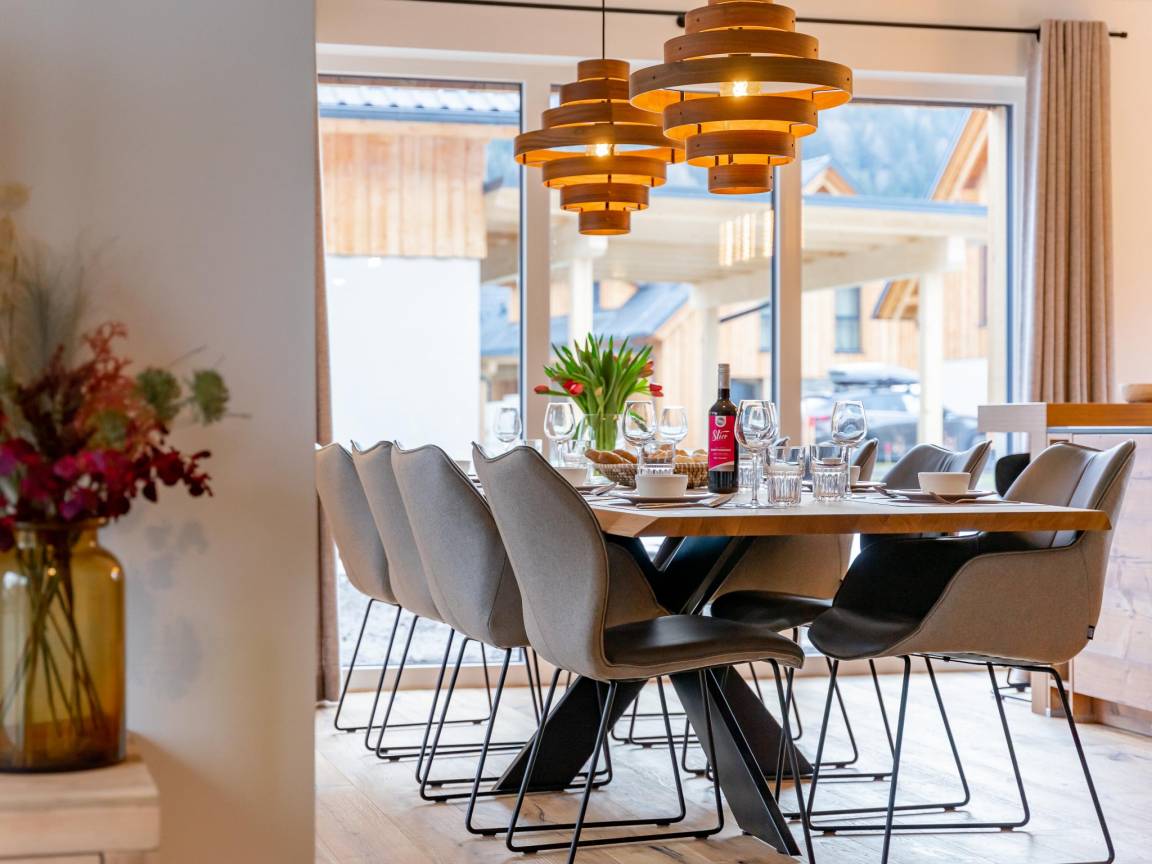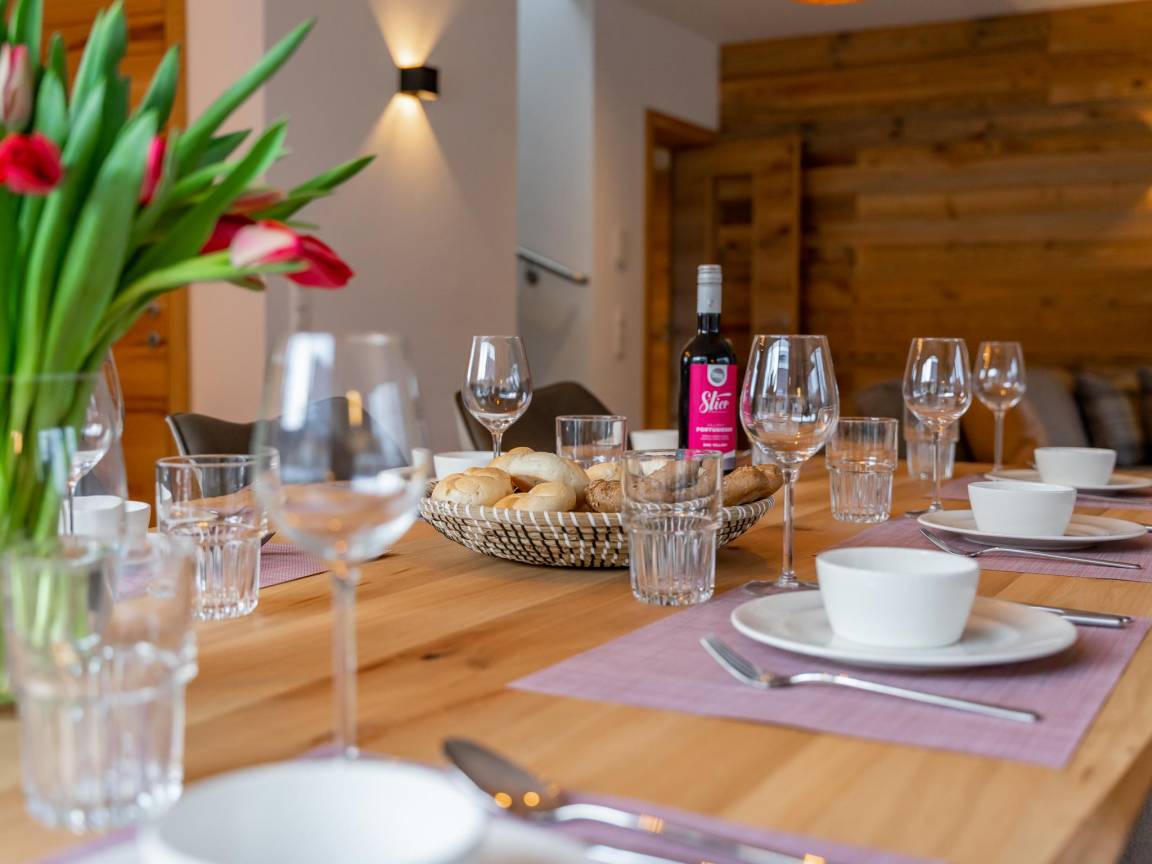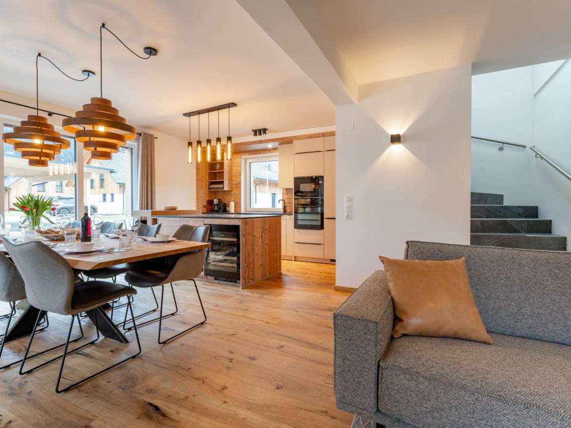Layout : Parterre: Wohnzimmer mit TV(smart TV), Sitzecke , Wohnküche mit Esstisch(9 Personen), Kochplatte(Induktion), Kochendwasserhahn, Kaffeemaschine(cups, Filter), Backofen, Mikrowelle, Geschirrspüler, Kühlschrank, Weinkühlschrank , Schlafzimmer mit Badezimmer mit 2x Einzelbett(Boxspring), TV(smart TV), Dusche, Waschbecken, Toilette , Toilette, Flur, Abstellraum mit Skischuhheizung