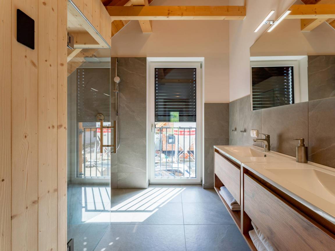 In der 1. Etage: Schlafzimmer mit Doppelbett(Boxspring) , Schlafzimmer mit Badezimmer mit Doppelbett(Boxspring, 180 x 210 cm), Dusche, Waschbecken, Toilette , Schlafzimmer mit Badezimmer mit Doppelbett, Dusche, Waschbecken, Toilette , Badezimmer mit Dusche, Sauna, 2x Waschbecken, Föhn , Toilette, Flur