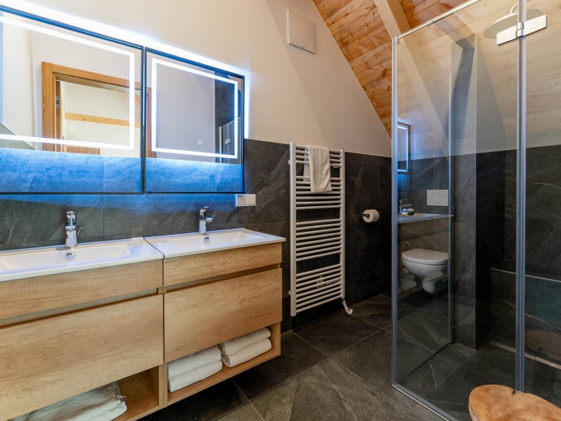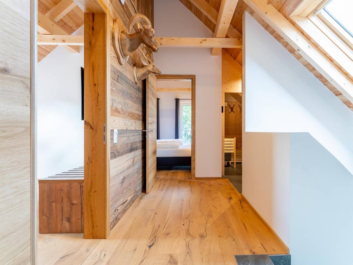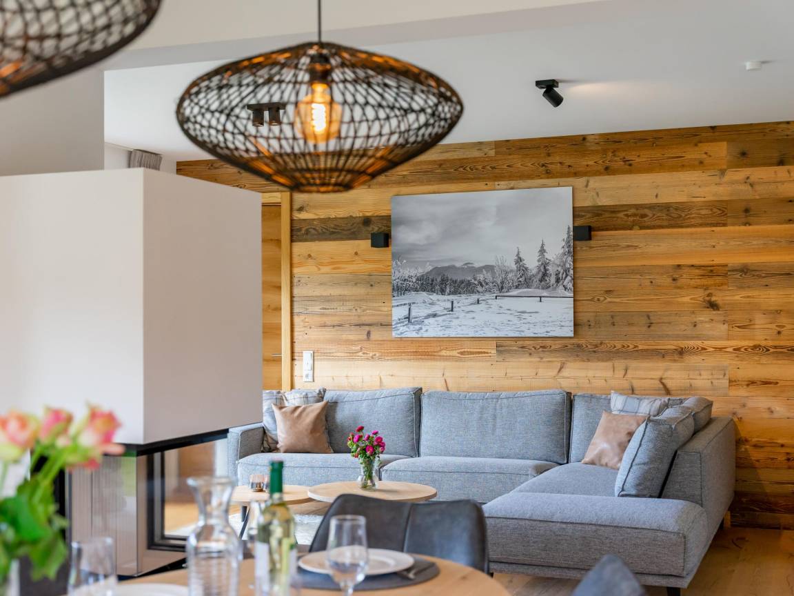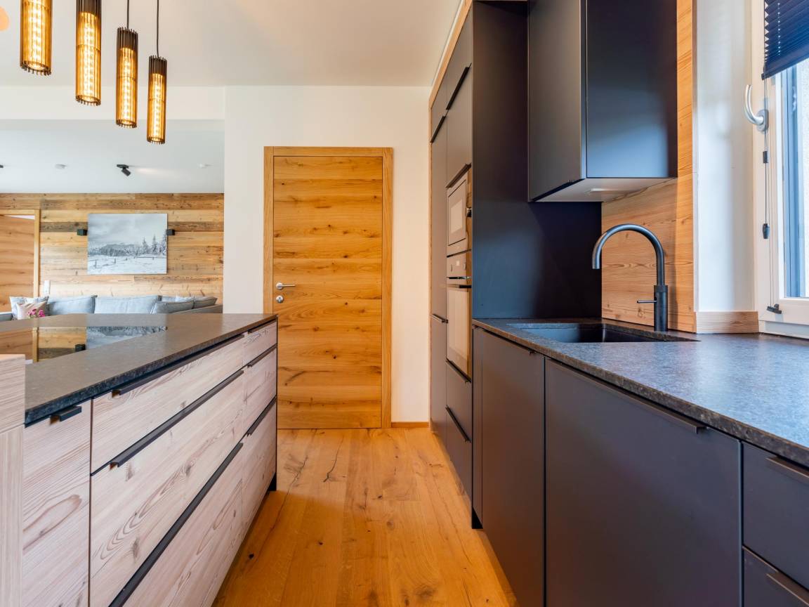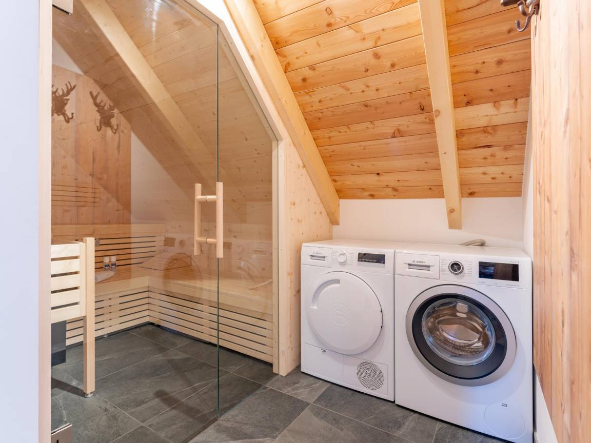 Layout : Parterre: Wohnzimmer mit TV(smart TV), Kamin, Sitzecke , Wohnküche mit Esstisch(8 Personen), Kochplatte(Induktion), Kochendwasserhahn, Kaffeemaschine(cups, Filter), Backofen, Mikrowelle, Geschirrspüler, Kühlschrank, Tiefkühlschrank, Weinkühlschrank , Schlafzimmer mit Badezimmer mit 2x Einzelbett(Boxspring), TV(smart TV), Dusche, Waschbecken, Toilette , Toilette, Flur, Abstellraum mit Skischuhheizung