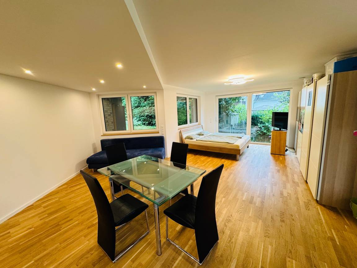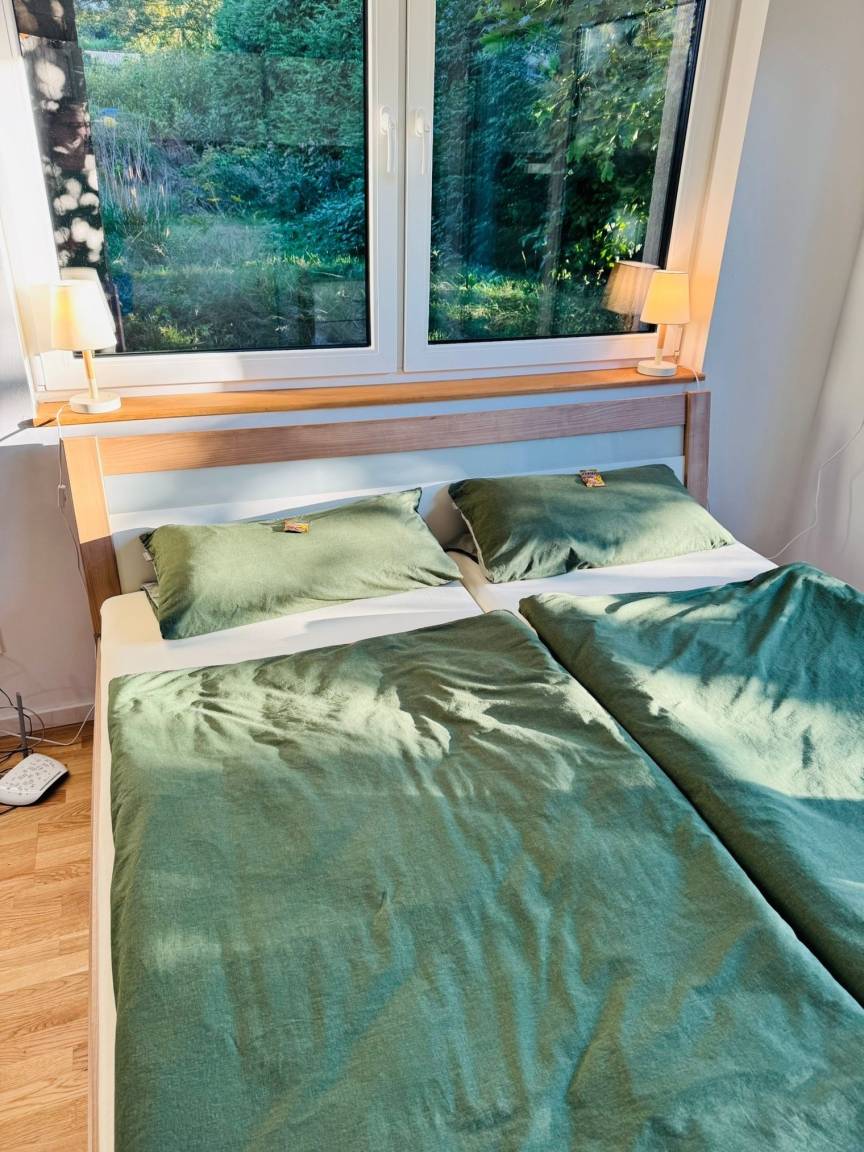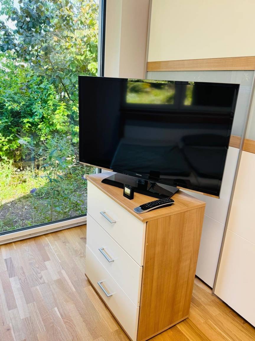 Willkommen in unserer hellen und gemütlichen Neubaueinliegerwohnung mit Eiche Parkettboden und Fußbodenheizung. Das 1-Zimmer-Appartement verfügt über ein 180x200cm Bett mit hochwertigen Tempur-Matratzen sowie ein ausziehbares Schlafsofa für 2 Personen. Neben einer modernen, vollausgestatteten Küche bietet die Wohnung ein neues Bad mit barrierefreier Regendusche. Kinderbett und Kinderhochstuhl sind auf Nachfrage verfügbar.