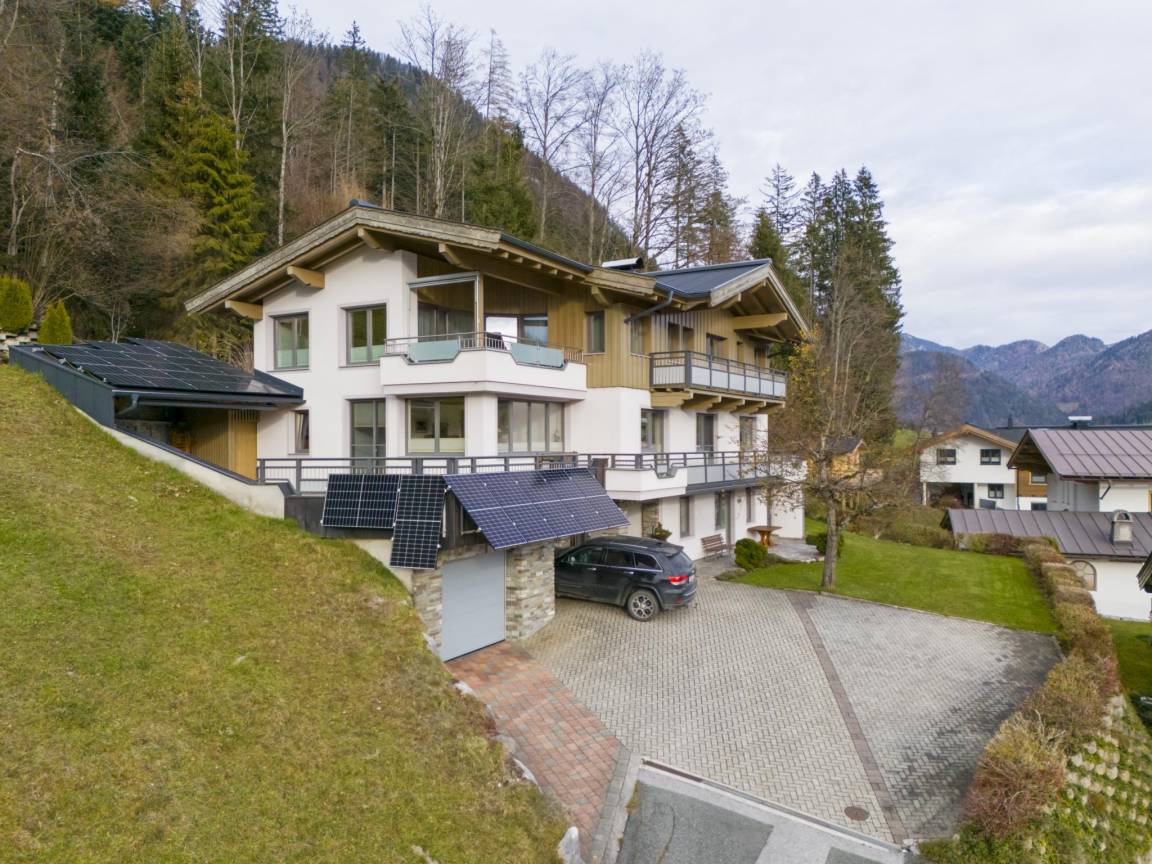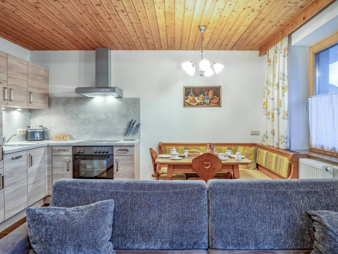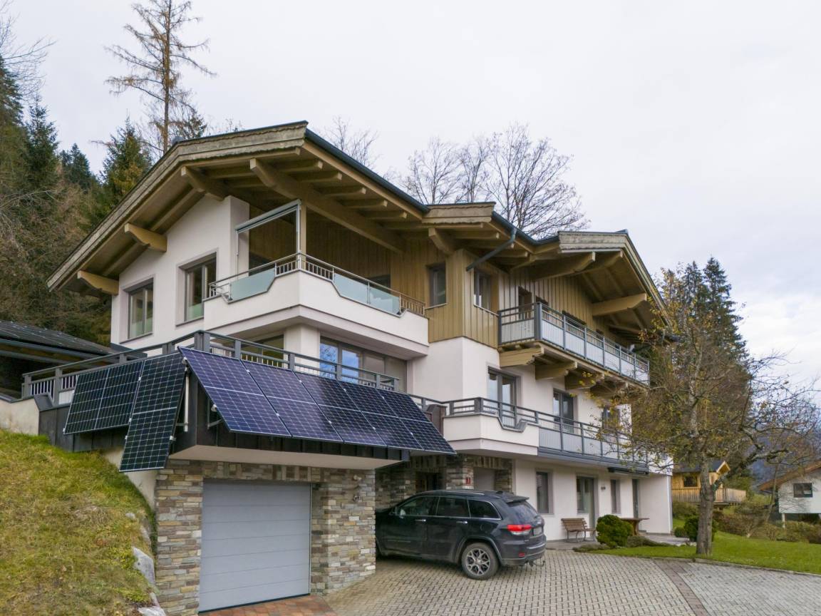 Hausbeschreibung : Die 55m² große Ferienwohnung für 5 Personen bietet 2 Schlafzimmer, ein Badezimmer mit Dusche, WC und Waschbecken sowie ein Wohn-Esszimmer mit gemütlicher Sitzecke, TV und einer offenen, voll ausgestatteten Küche. Der Garten mit Terrasse lädt zum Entspannen ein und bietet einen traumhaften Ausblick auf das Jakobskreuz. Die Wohnung liegt auf der Sonnenseite, der Skibus ist nur 110m entfernt. Ein Erlebnispark ist fußläufig erreichbar und der Pillersee in wenigen Minuten mit dem Auto