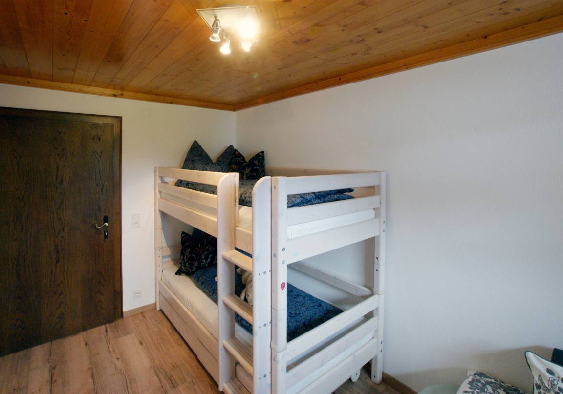 Gemütliches Wohnzimmer mit Kachelofen und einem Ausziehbett; neue Küche mit großzügiger Sitzgarnitur; Kinderzimmer mit einem sehr hochwertigem Etagenbett und einem Ausziehbett; Elternschlafzimmer mit Doppelbett in Comforthöhe; Badezimmer mit Dusche, WC und Waschbecken; separates WC; Abstellraum; Keller. Böden: Fliese und Korkböden im Wohnzimmer und den Schlafzimmern.