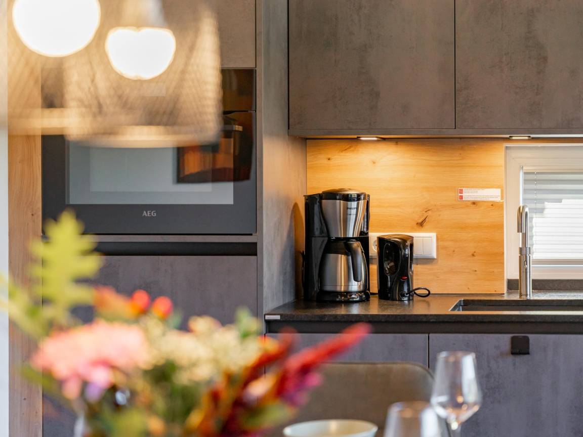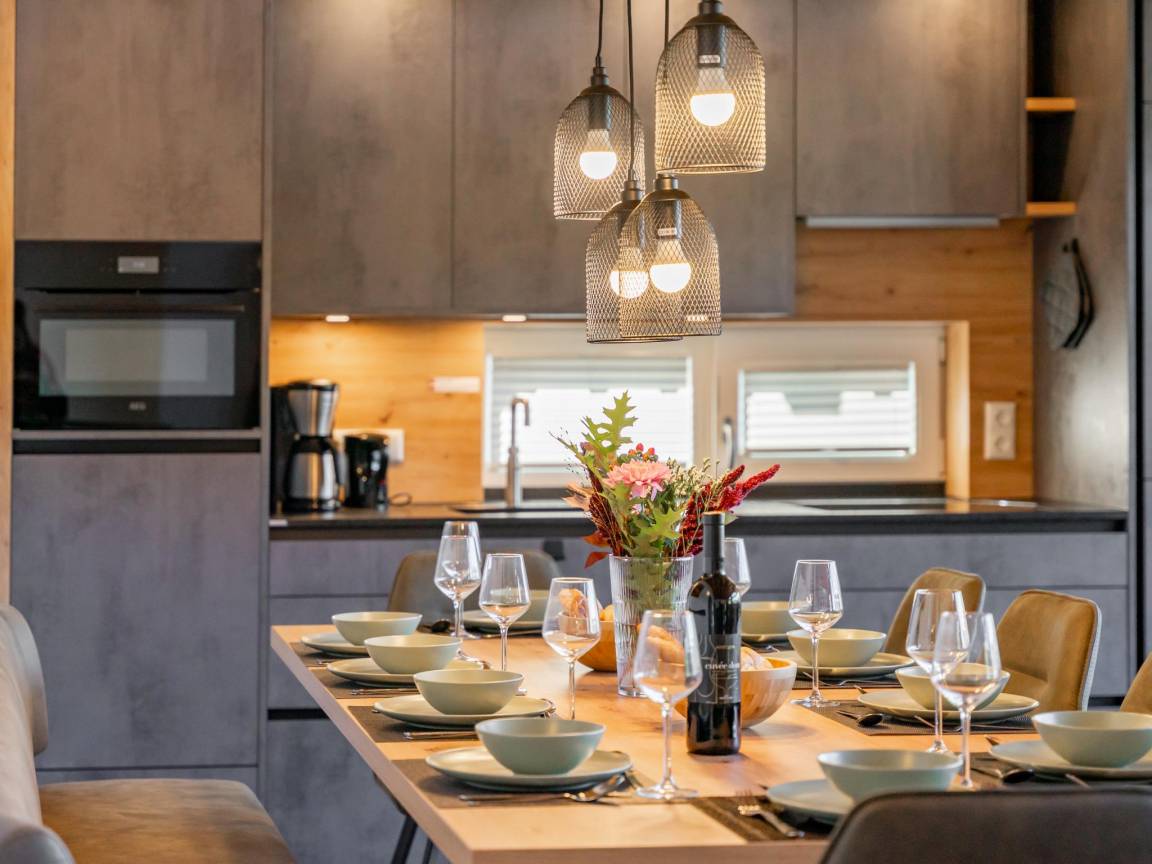 In der 1. Etage: Wohnzimmer mit TV, Esstisch(10 Personen), Sitzecke , offene Küche mit Kochplatte(4 Kochplatten, Induktion), Kochendwasserhahn, Toaster, Dunstabzugshaube, Kaffeemaschine(Filter), Kombi-Mikrowelle, Geschirrspüler, Kühl-/Gefrierkombination , Schlafzimmer mit Badezimmer mit Doppelbett, Dusche, Waschbecken, Toilette , Toilette mit Waschbecken, Toilette , Terrasse(überdacht) mit Esstisch(10 Personen)