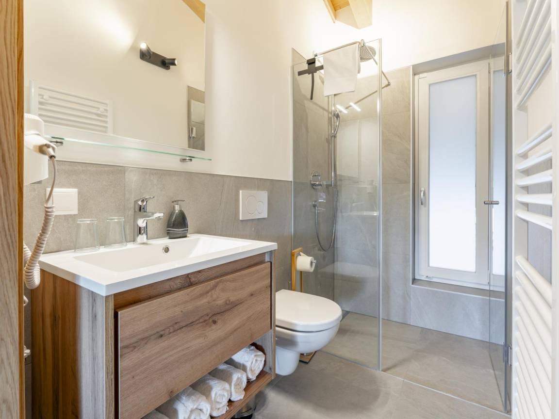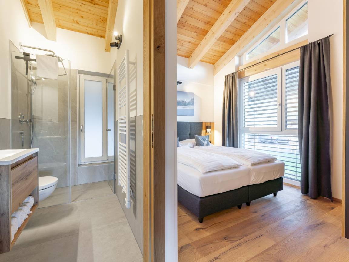 Layout : Parterre: 2x Schlafzimmer mit Badezimmer mit Doppelbett, Dusche, Waschbecken, Terrasse, Föhn , Toilette mit Waschbecken, Toilette , Skiabstellraum