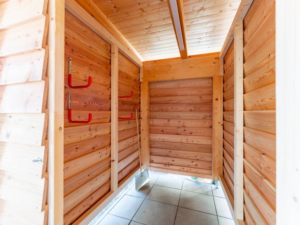 Layout : Parterre: Schlafzimmer mit Badezimmer mit Doppelbett, Dusche, Waschbecken, Toilette, Terrasse , 2x Schlafzimmer mit Badezimmer mit Doppelbett, Dusche, Waschbecken, Terrasse , Toilette mit Waschbecken, Toilette , Ruheraum mit Dusche, Sauna , Skiabstellraum mit Skischuhheizung