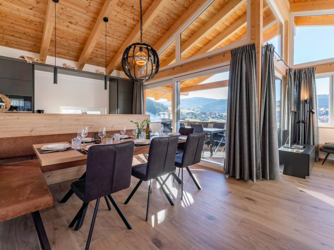 „Das Ferienhaus ist top und sauber und modern eingerichtet. Die erste positive Überraschung waren die fertig bezogenen Betten. Großzügig geschnittener offener Wohn/Küchenbereich waren für uns 7 Personen genau richtig. Eine schöne Panoramaaussicht Richtung Skigebiet und die Sauna waren das Sahnehäubchen. Vielen Dank für diese tolle Unterkunft.“