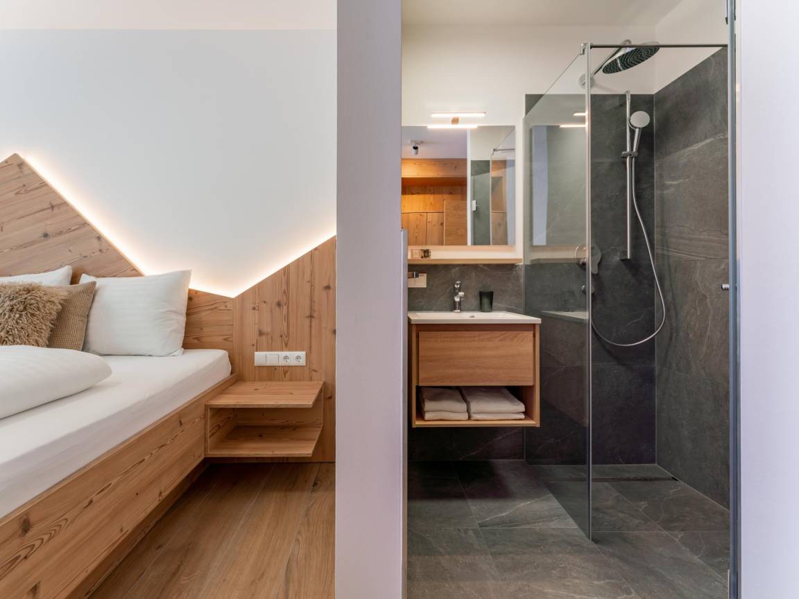 Layout : Parterre: Eingang, 2x Schlafzimmer mit Badezimmer mit Doppelbett(180 x 210 cm), TV(smart TV), Dusche, Waschbecken, Terrasse , Toilette mit Waschbecken, Toilette , Skiabstellraum mit Skischuhheizung