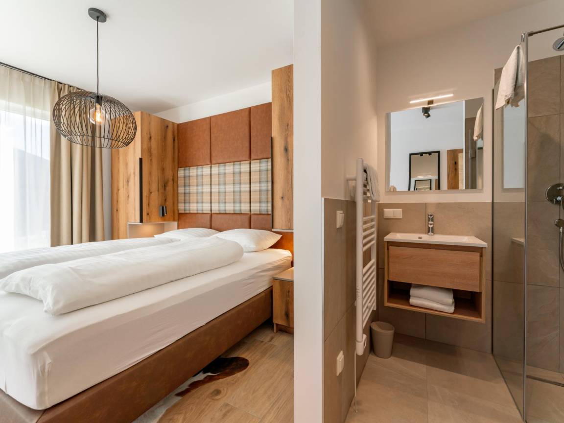 Layout : Parterre: 2x Schlafzimmer mit Badezimmer mit Doppelbett, Dusche, Waschbecken , Toilette mit Waschbecken, Toilette , Skiabstellraum mit Skischuhheizung