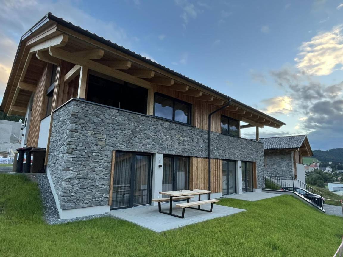 Hausbeschreibung : Diese luxuriöse Doppelhaushälfte befindet sich in dem neuen alpinen Ferienort Sankt Lambrecht. Hier wohnen Sie direkt an den Pisten des Skigebiets Grebenzen, inmitten des wunderschönen Naturparks Zirbitzkogel-Grebenzen. Ein einzigartiger Ort, an dem Aktivurlaub und pure Entspannung Hand in Hand gehen, das ganze Jahr über. Winter: Ski-in Ski-out. Morgens steigen Sie buchstäblich vor der Haustür auf Ihre Skier und gleiten direkt zur nagelneuen Gondel