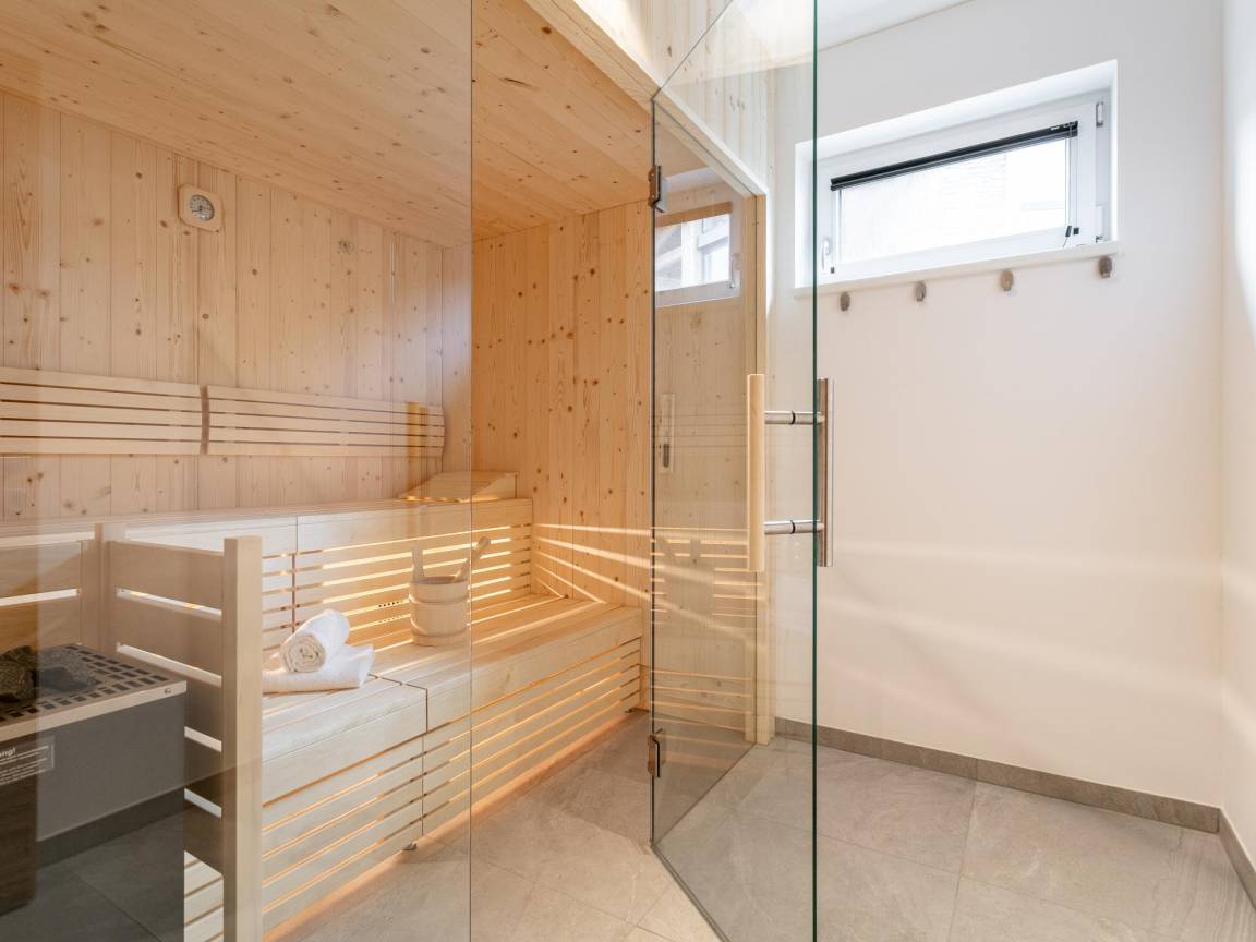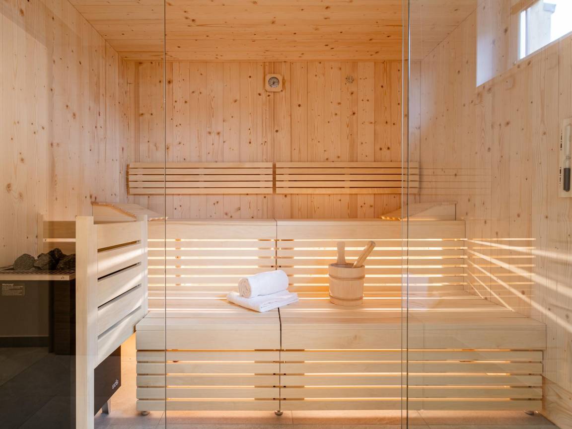 Layout : Parterre: Schlafzimmer mit Badezimmer mit Doppelbett, Dusche, Waschbecken, Toilette, Terrasse , 2x Schlafzimmer mit Badezimmer mit Doppelbett, Dusche, Waschbecken, Terrasse , Toilette mit Waschbecken, Toilette , Ruheraum mit Dusche, Sauna , Skiabstellraum