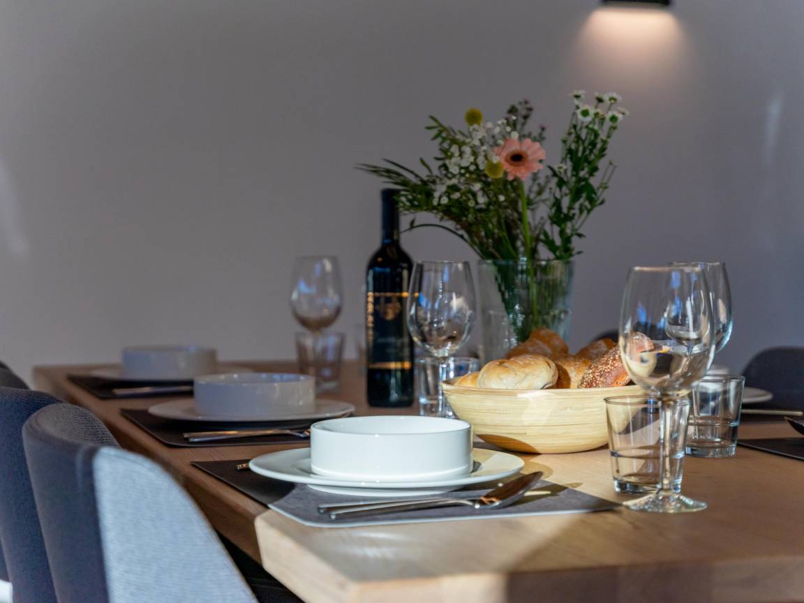 „Unkomplizierter Check-in, Service-Hotline immer erreichbar, E-Auto Ladestation direkt vor dem Haus und unkompliziert zu benutzen, ruhige Lage gut ausgestattetes Haus, sehr geschmackvollen Wohlfühlambiente“