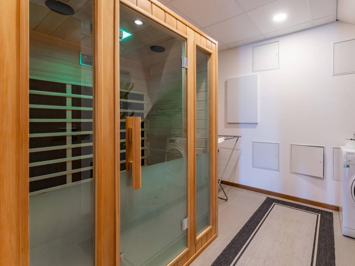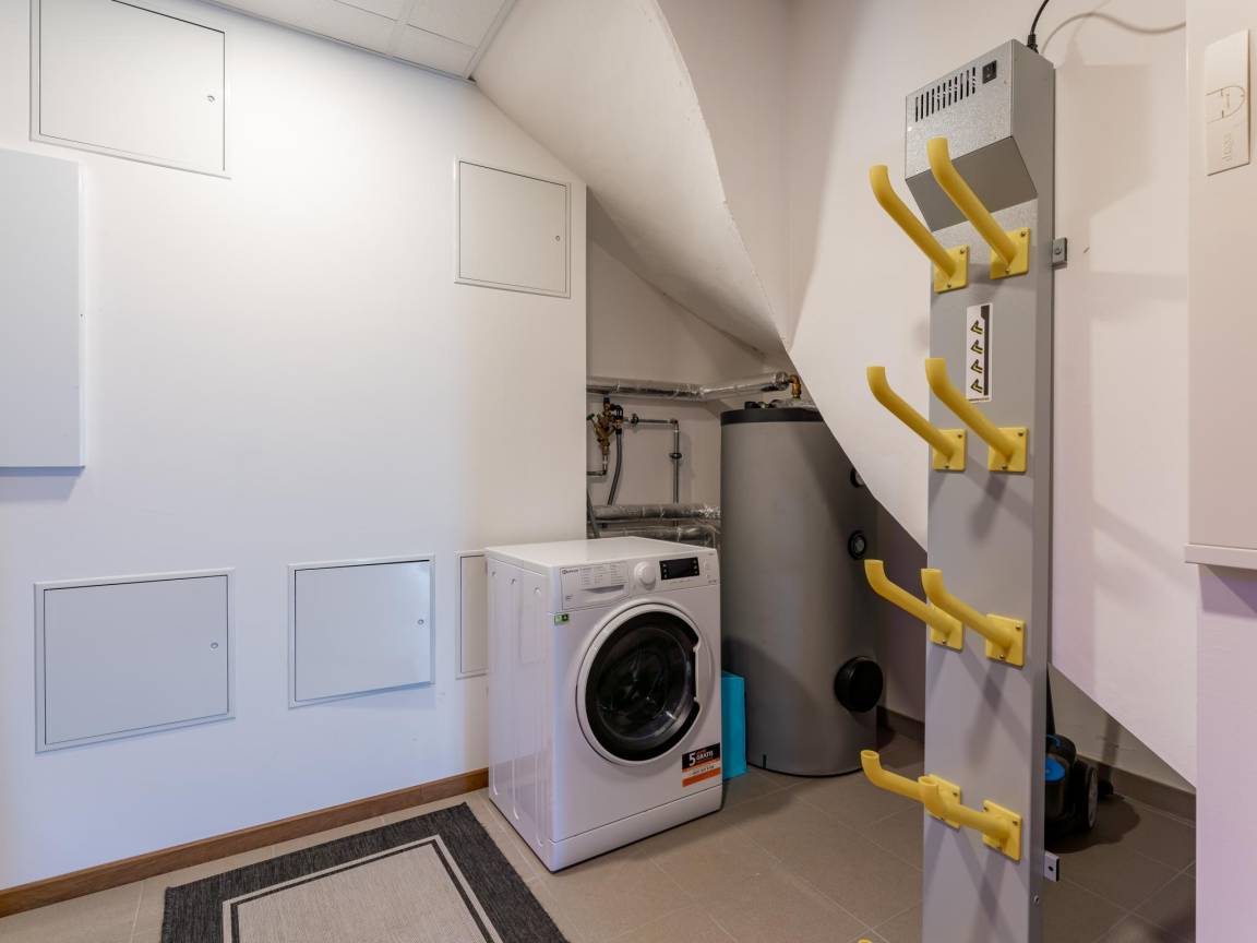 Layout : Parterre: Eingang, Schlafzimmer mit Badezimmer mit Doppelbett(Boxspring), Etagenbett, Dusche, Waschbecken, Toilette, Föhn , Abstellraum mit Wäschetrockner, Waschmaschine, Skischuhheizung, Bügelbrett, Bügeleisen , Infrarotsauna