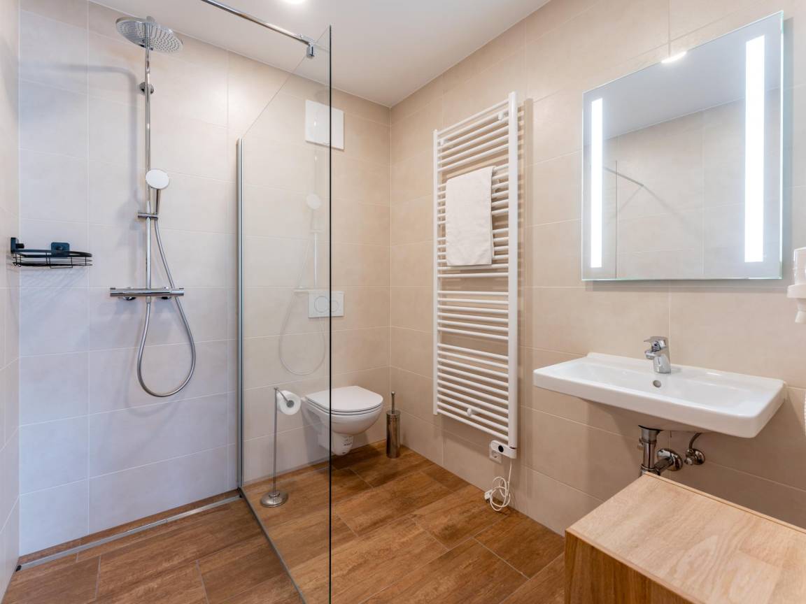 In der 1. Etage: Wohnzimmer mit Doppelschlafcouch, TV, Esstisch(10 Personen), Sitzecke, Terrasse(alleinige Nutzung, umzäunt) , offene Küche mit Kochplatte, Wasserkocher, Kaffeemaschine(cups), Backofen, Mikrowelle, Geschirrspüler, Kühl-/Gefrierkombination , Schlafzimmer mit Schlafcouch 1 Pers., Doppelbett(Boxspring), TV , Schlafzimmer mit Doppelbett(Boxspring) , Badezimmer mit Badewanne, Dusche, Waschbecken, Toilette, Föhn , Toilette mit Waschbecken, Toilette