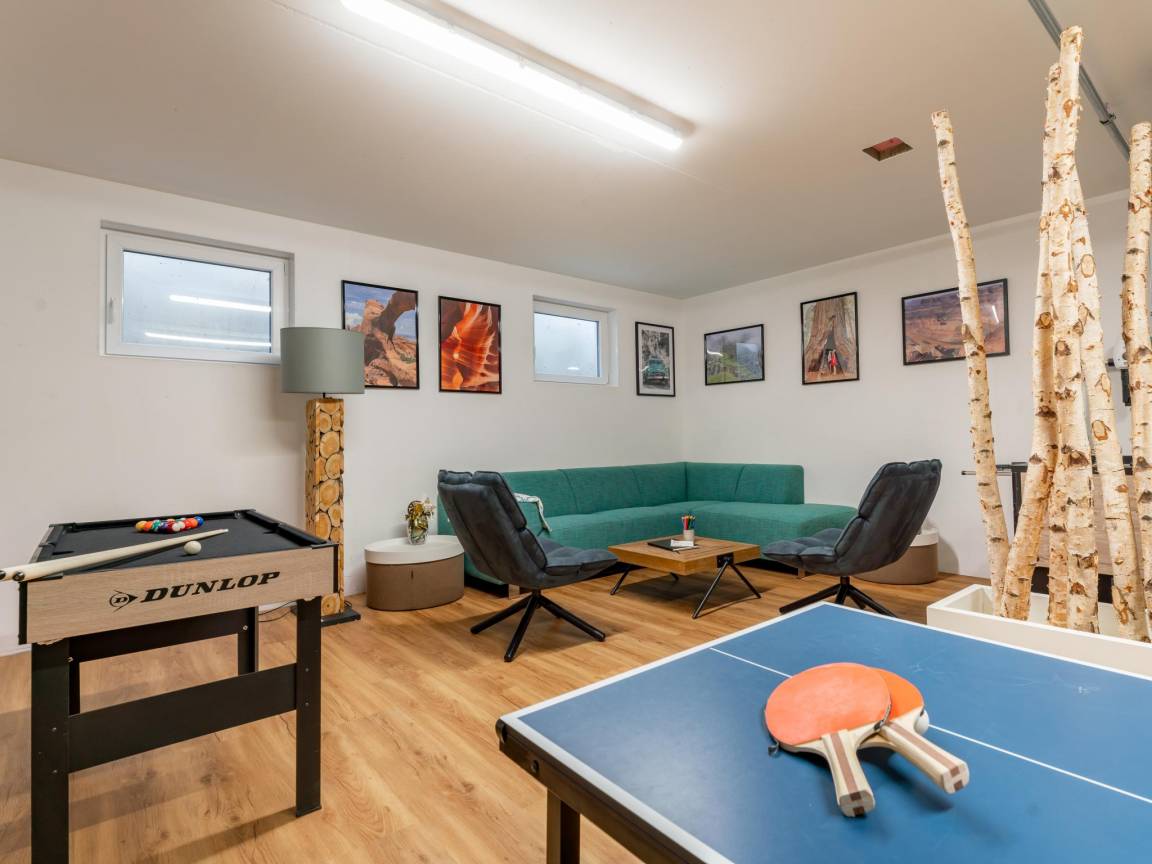 Keller: Spielzimmer mit Sitzecke, Tischtennisplatte, Tischfußball, Billard, Gesellschaftsspiele, Spielzeug , Skiabstellraum(über Außentreppe) mit Skischuhheizung, Heizung