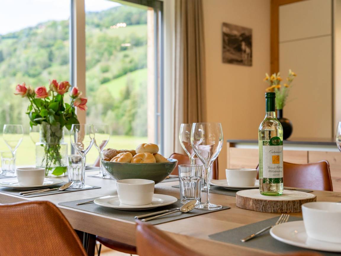 Layout : Parterre: Wohnzimmer mit TV(smart TV), Ofen(Holz), Sitzecke , Wohnküche mit Esstisch, Kochplatte(Induktion), Kaffeemaschine(cups, Filter), Backofen, Mikrowelle, Geschirrspüler, Kühlschrank, Weinkühlschrank , Schlafzimmer mit Badezimmer mit 2x Einzelbett(Boxspring), Dusche, Waschbecken, Toilette , Toilette, Flur, Abstellraum mit Skischuhheizung