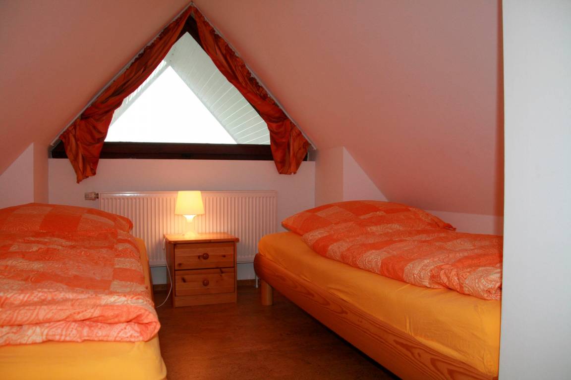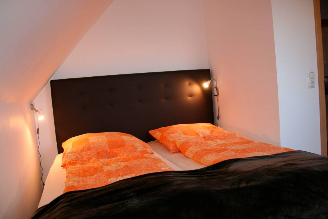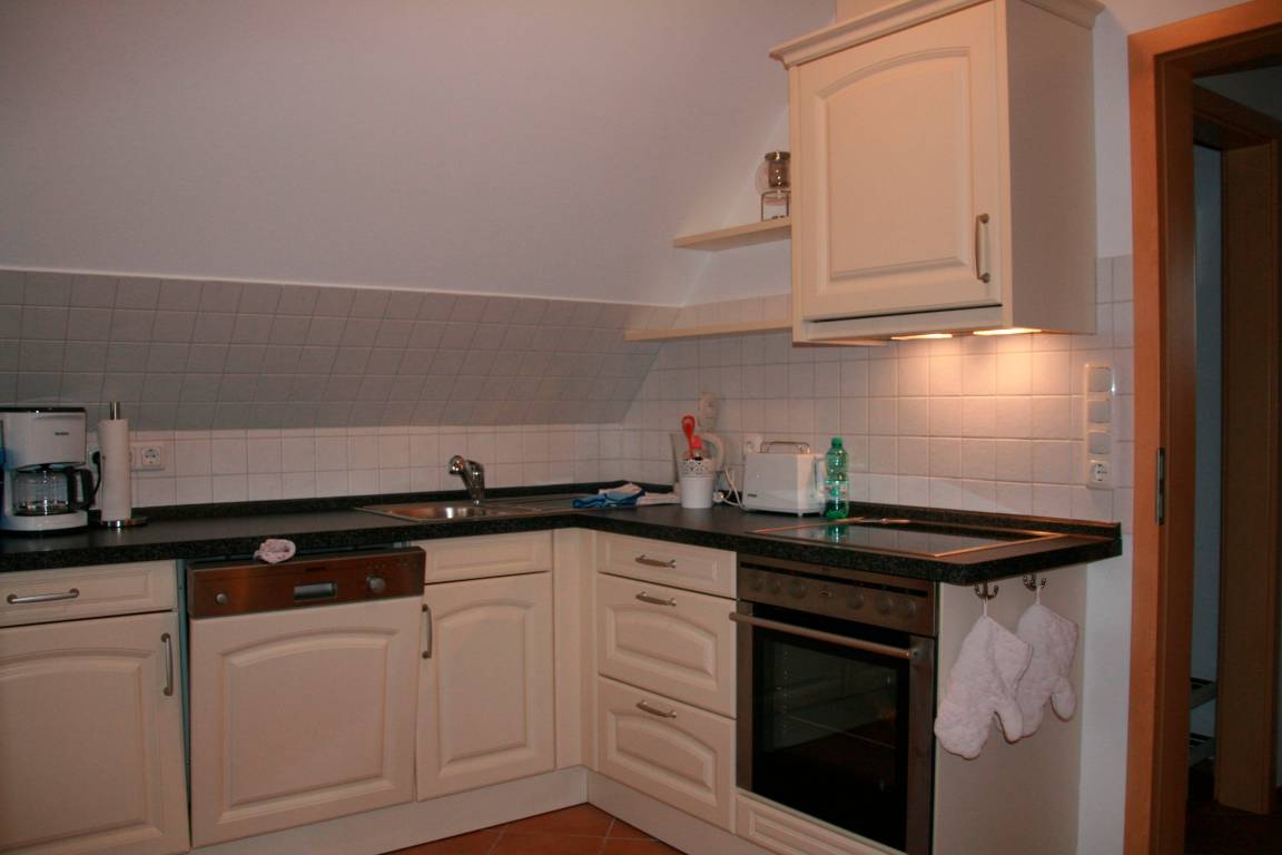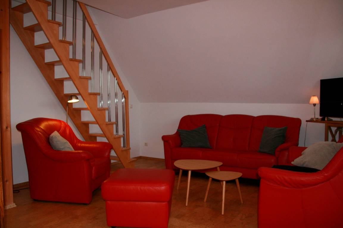 Die Ferienwohnung "Veit" befindet sich im OG. Mit ca. 60 qm² und 2 Schlafzimmern. Ein Schlafzimmer befindet sich im gemütlichen Spitzboden zu dem eine steile Raumspartreppe führt. Wegen der steilen Raumspartreppe, sollten dort nur Kinder ab 5 Jahre schlafen ! Die Wohnung "Veit" besitzt einen großen Süd-Balkon . Die Wohnung wurde mit viel Liebe und Sorgfalt ausgestattet. Sie verfügt über eine offene Küche mit Geschirrspüler, Mikrowelle, Ceranfeldherd und Backofen. Selbstverständlich gibt es Sat-TV , sowie W-Lan. Für unsere kleinen Gäste stellen wir Hochstuhl, Kinderbett kostenlos zur Verfügung.