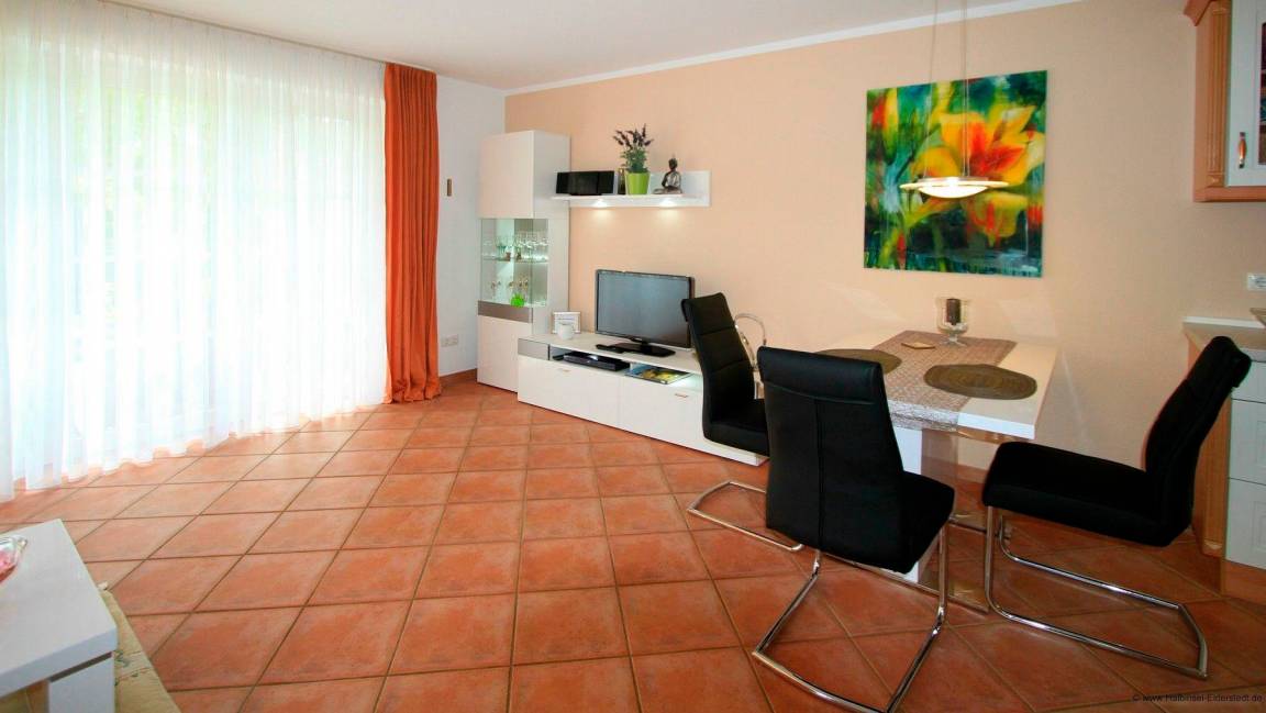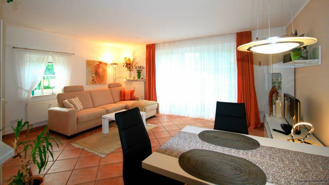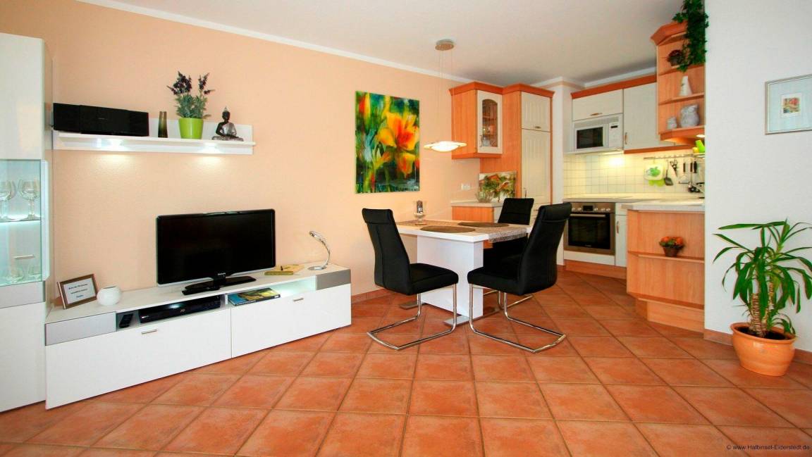 Unsere gemütliche Nichtraucher-Ferienwohnung ist mit hochwertigem Mobiliar ausgestattet. Die Ausstattung ist im maritimen Still gehalten und verspricht Ihnen einen traumhaften Aufenthalt auf St. Peter Ording. Es erwartet Sie eine ideal geschnittene Ferienwohnung. Sie haben eine schöne Diele von der Sie in alle Wohnbereiche gelangen. Im Wohnzimmer erwartet Sie eine gemütliche Couchgarniturl. Sie gelangen vom Wohnbereich direkt auf die Terrasse, das bodentiefe Fenster verleiht dem Raum ein sehr warmen und heimischen Charakter. Des Weiteren gibt es einen Wandschrank und eine Essecke. Unsere moderne Küche ist mit allem, was Sie für ein zauberhaftes Gericht benötigen eingerichtet.