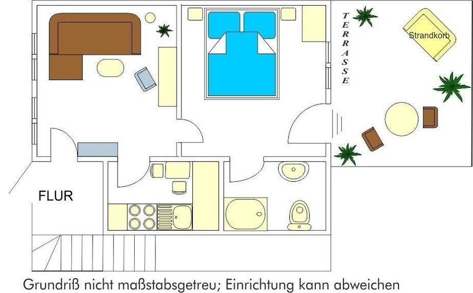 Die gemütliche Ferienwohnung (ca. 35qm) liegt parterre mit eigener Terrasse und befindet sich im hinteren Teil unseres Hauses, mit separatem Eingang.