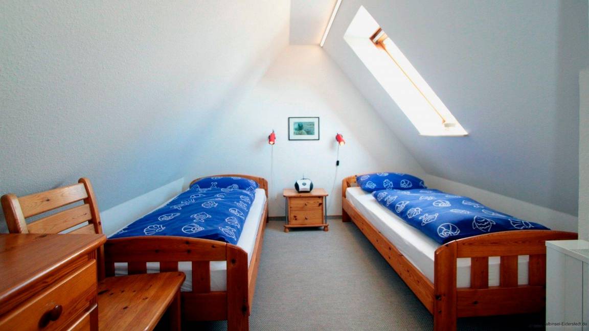 Das Kinderzimmer mit zwei Einzelbetten ist über eine Treppe zu erreichen.