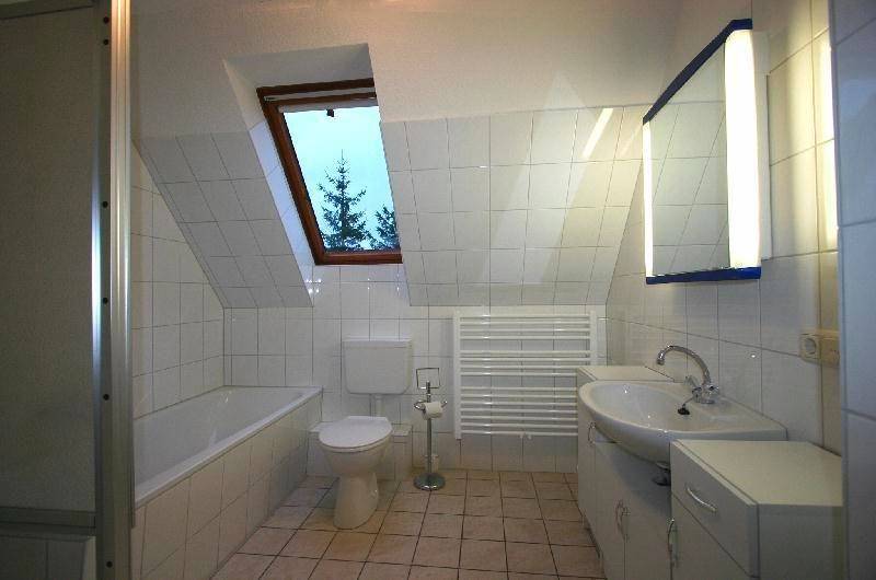 Der komfortable Charakter der Unterkunft setzt sich im Badezimmer fort. Das Design ist schlicht, aber edel. Ein schöner Spiegelschrank, Badewanne extra Dusche und Waschbecken, WC und Handtuchtrockner sind vorhanden.
