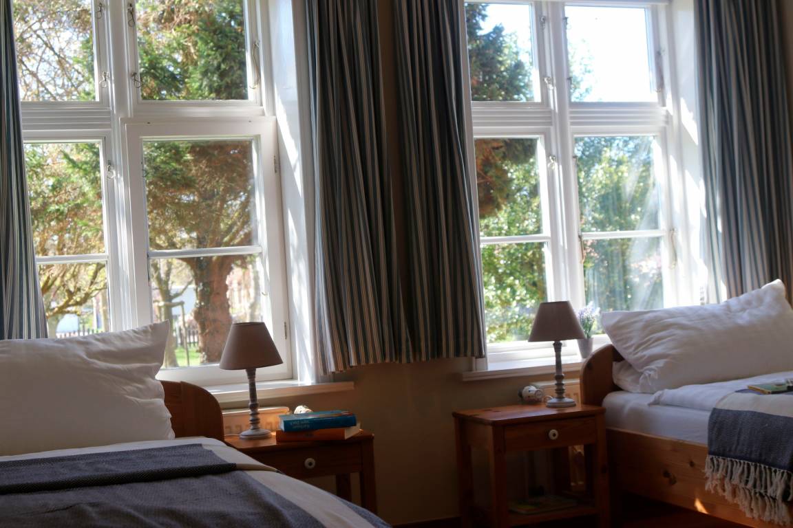 Durch die Fernsehserie "Gegen den Wind" wurde die Alte Schule als Pension Godewind bekannt. Das Reetdachhaus liegt mitten im Ortsteil Dorf auf einem ca. 2000 qm großen angelegten Garten-