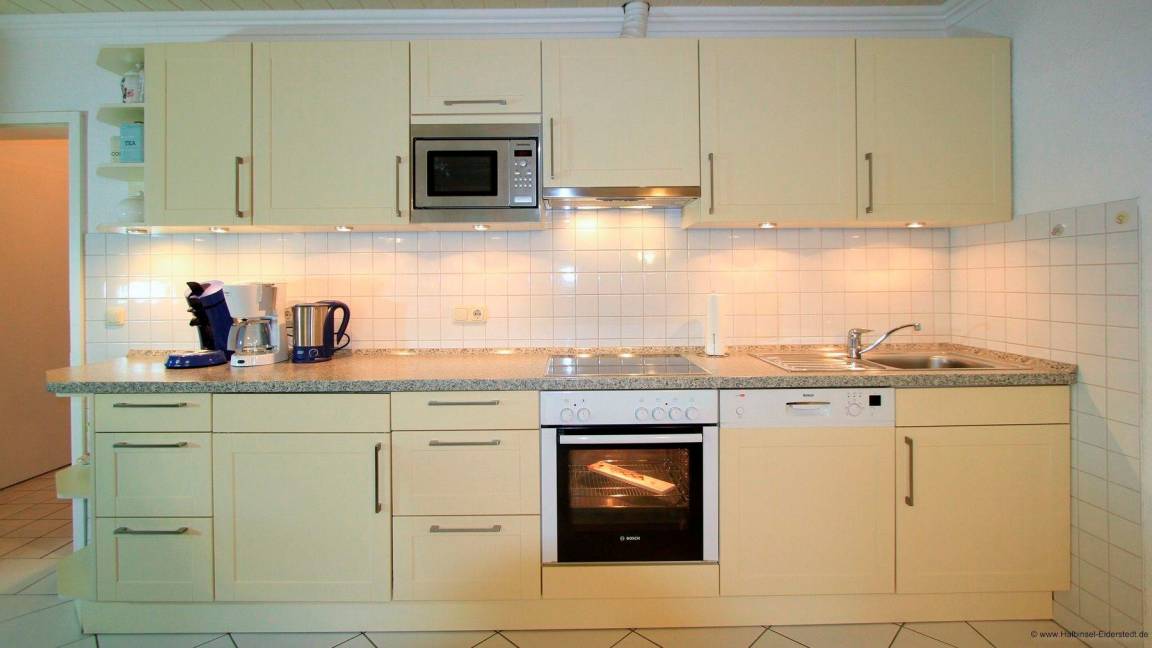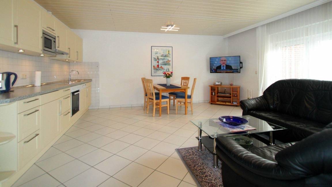 Im Wohnraum erwarten Sie eine Ledercouch , LCD Fernseher, DVD- Player und eine Stereoanlage. Die Küchenzeile ist mit folgenden ausgestattet: Herd mit Ceranfeld, Backofen, Mikrowelle, Kühlschrank, Geschirrspülmaschine, Kaffeemaschine, Wasserkocher, Mixer, Eierkocher sowie ausreichend Töpfe, Besteck und Geschirr für 5 Personen. Ein Esstisch mit 5 Stühlen steht für Sie bereit. Ein Kinderhochstuhl kann auf Anfrage gestellt werden. Das Duschbad (walk in Dusche) mit Fenster bietet genug Platz für Ihre Utensilien.